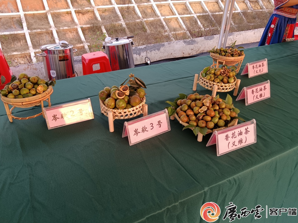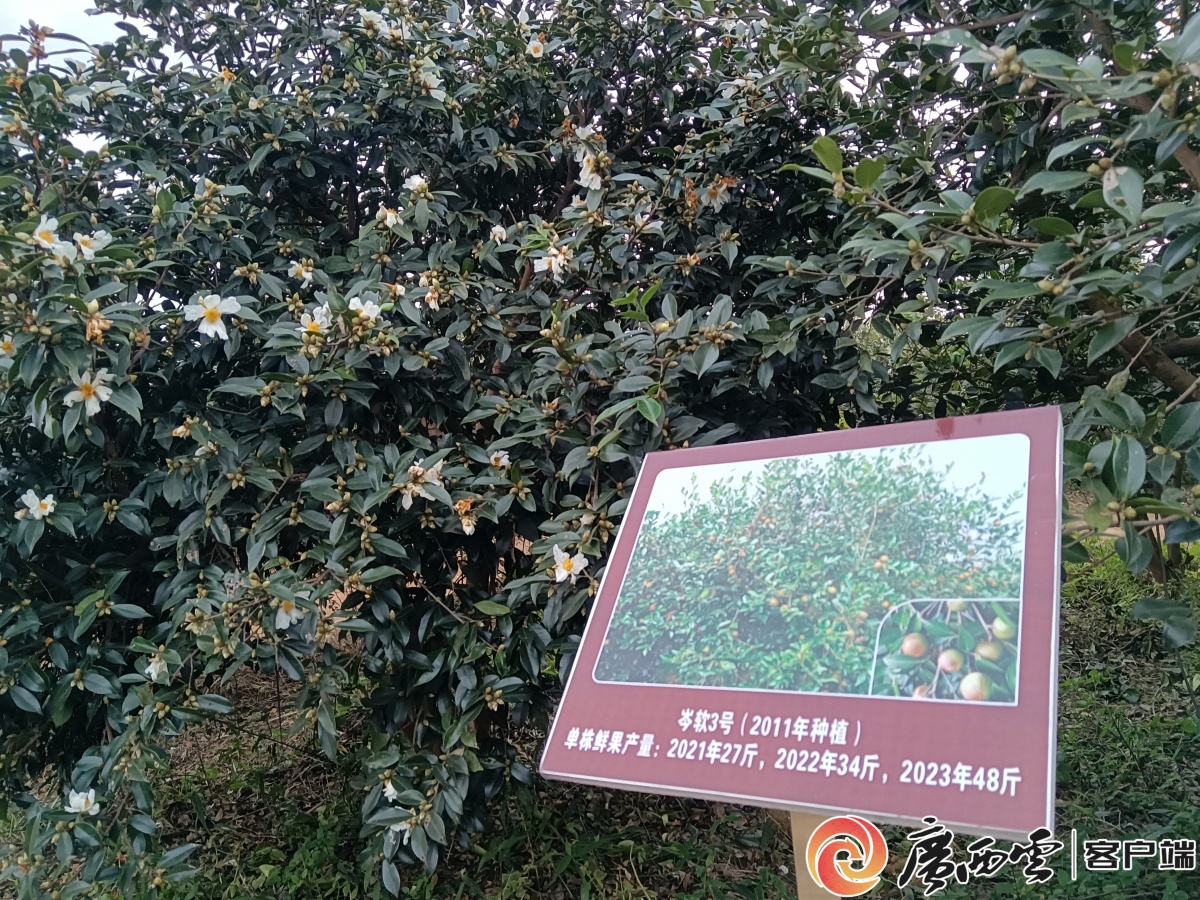 眼下正值油茶果丰收采摘时节,在广西益元香花油茶新品种中试基地,满园飘香、硕果累累的香花油茶让代表们惊叹不已。香花油茶具有生长快、坐果率高、早实、丰产、多抗、果油率高等优良性状,基地种植4年挂果率达到80%以上。目前,该基地种植香花油茶第一代无性系78个品种,包含我区认定的“义禄”“义丹”等13个良种,其中“义禄”“义丹”已经被国家林业和草原局列为油茶主推品种。今年11月,国家林业和草原局、科技司组织了测产,该样地亩产鲜果540公斤、折合茶油54公斤,单个无性系最高产量可达1219公斤、折合茶油121.9公斤。预计2024年进入盛果期,亩产鲜果可达750公斤以上。