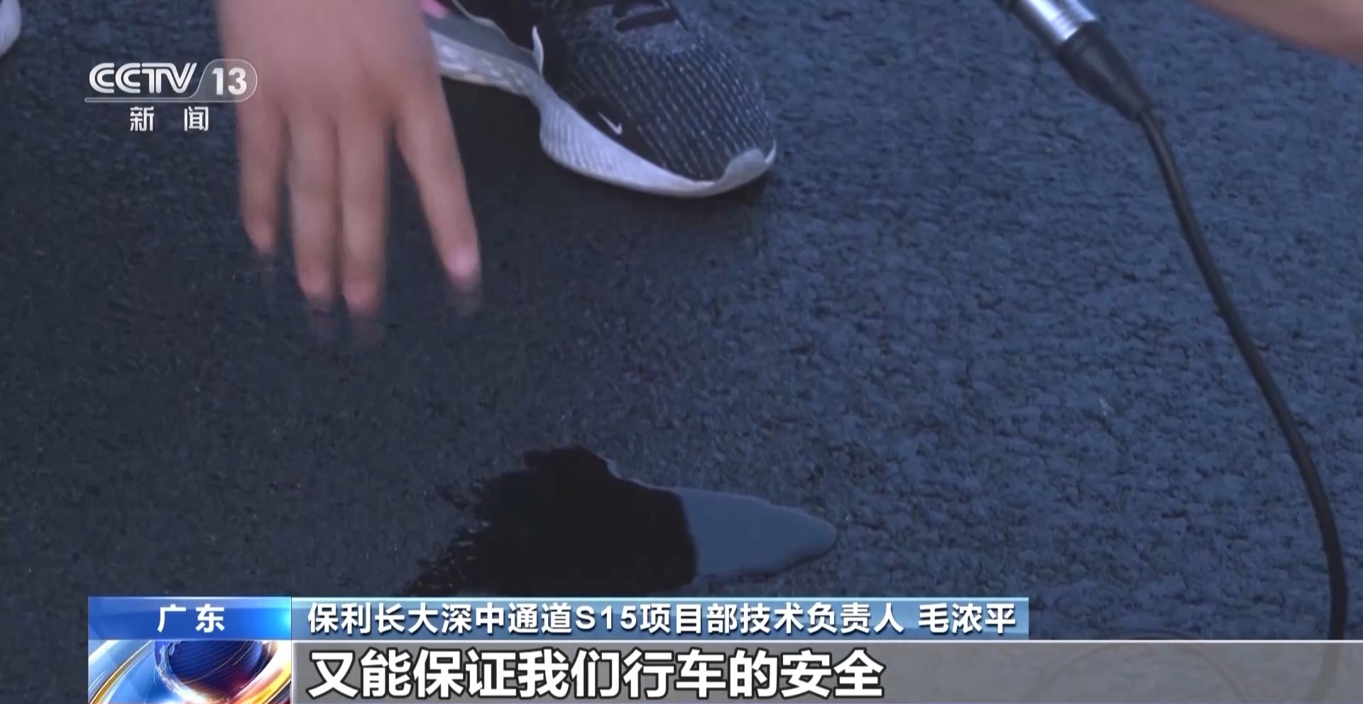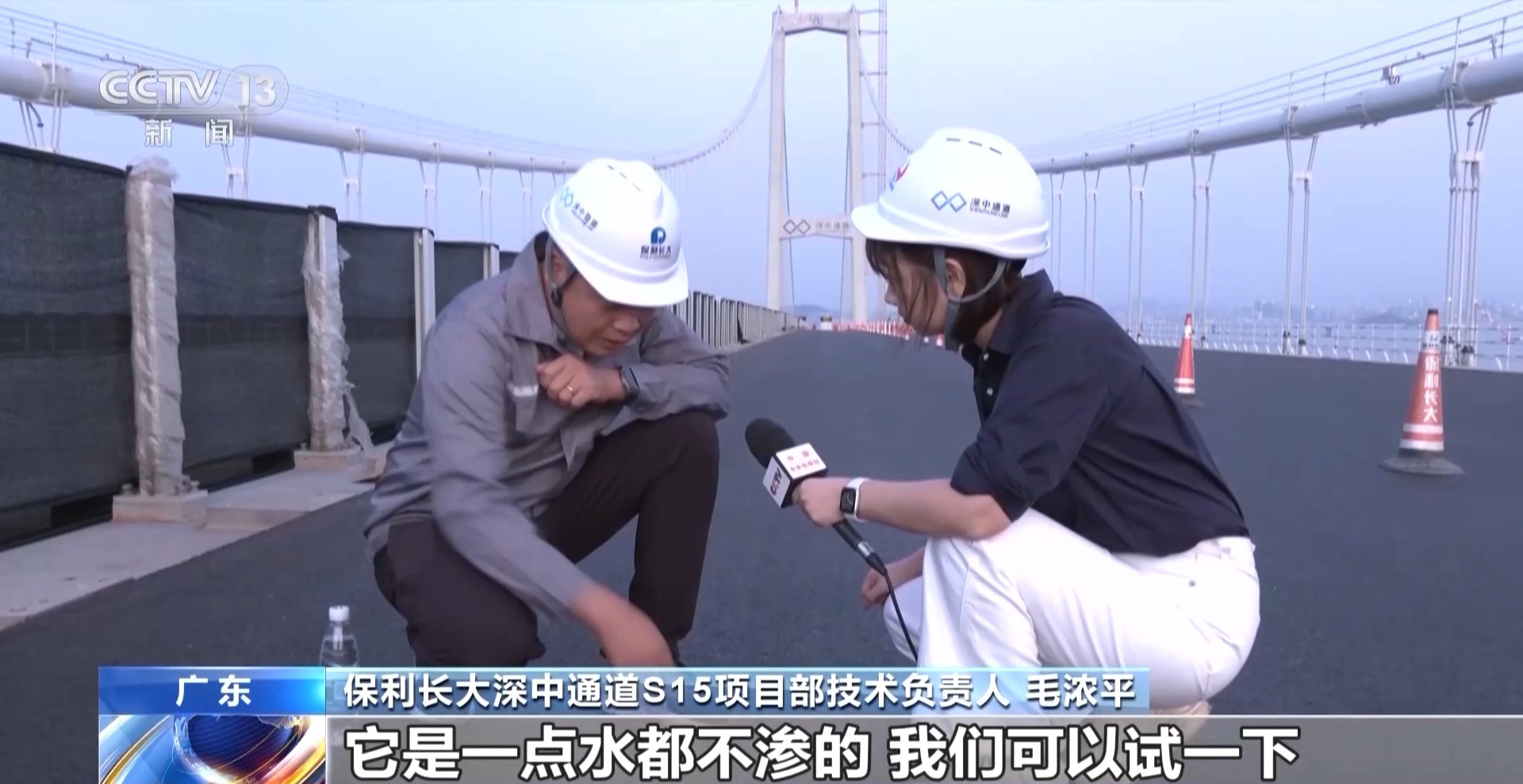 保利长大深中通道S15项目部技术负责人 毛浓平:目前看到的这个路面非常密实。它是一点水都不渗的,我们可以试一下。