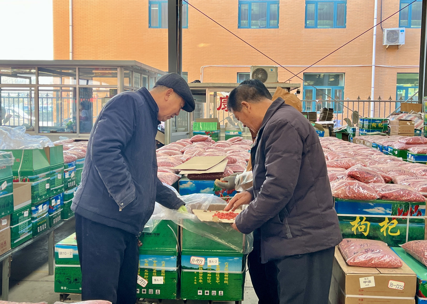 11月14日,在中宁国际枸杞交易中心,交易商正在观察枸杞品质。(央广网记者马文静摄)
