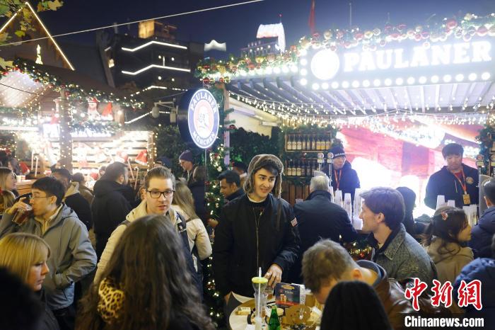 12月2日晚,外籍人士在圆明园路步行街上品尝美食与美酒。 中新网 记者 殷立勤 摄