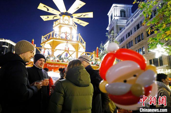 12月2日晚,外籍人士在圆明园路步行街上一边聊天、一边品尝美酒。 中新网 记者 殷立勤 摄