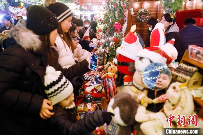 12月2日晚,民众在圆明园路步行街上挑选商品。 中新网 记者 殷立勤 摄