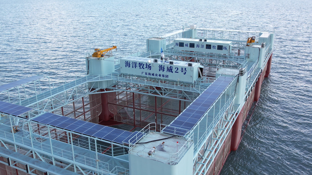 从雷州覃斗镇的流沙港码头向深蓝挺进12海里后,一个3万立方米的“庞然大物”伫立在海面。这是广东目前已投产的规模最大的海上养殖平台——“海威2号”。它的下水投产,标志着广东建设现代化海洋牧场迈出新的步伐。