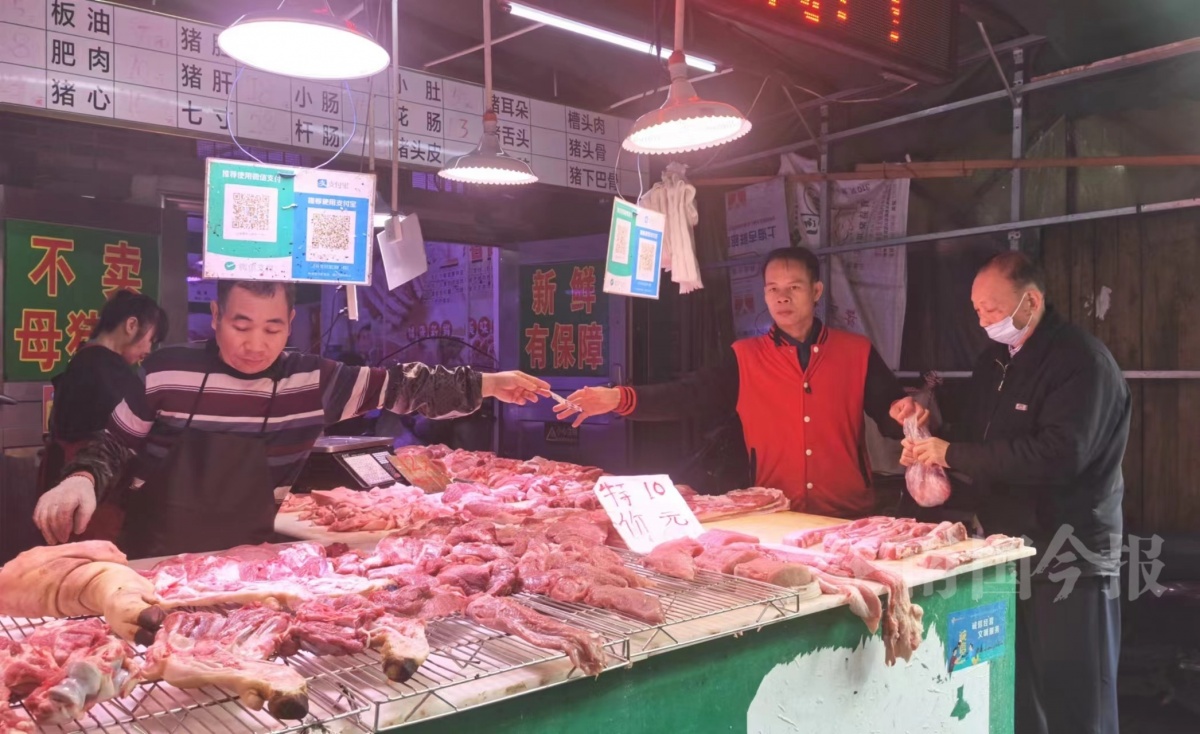 今年的猪肉销量和价格都有所下降。记者黎静摄