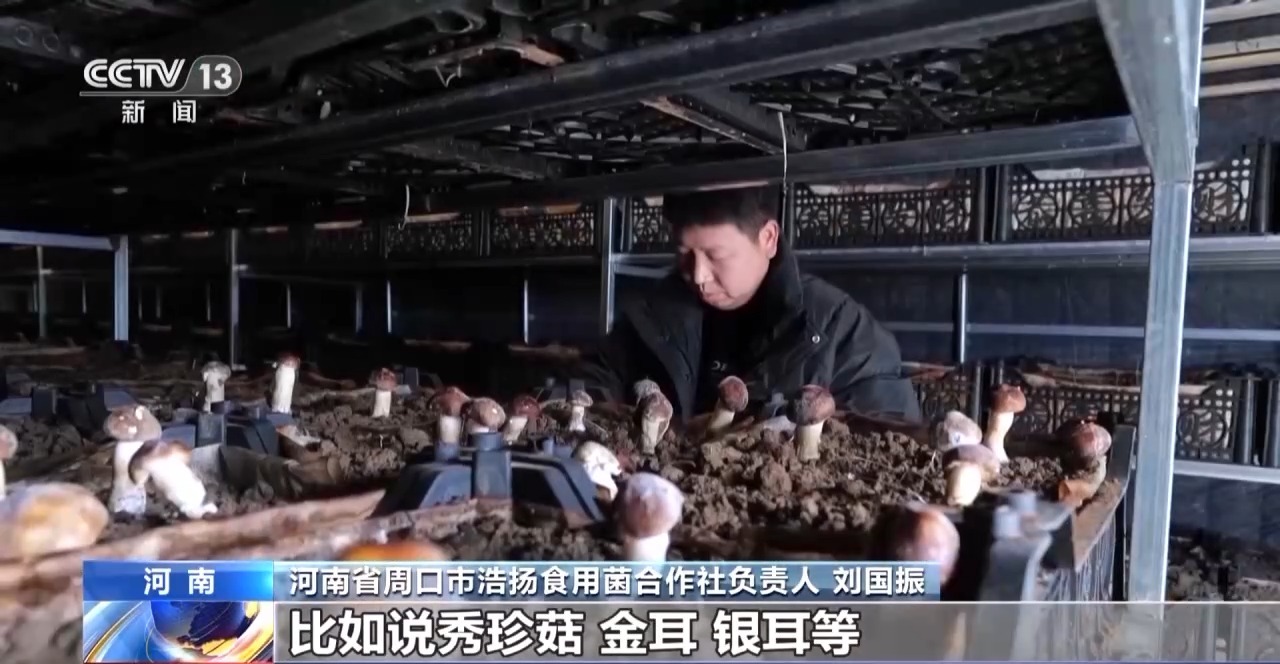 河南省周口市浩扬食用菌合作社负责人 刘国振:这种方舱的一个特点就是温度环境可控制,适合很多高端品种的种植,比如说秀珍菇、金耳、银耳等,它的经济效益是传统种植模式的10倍左右。