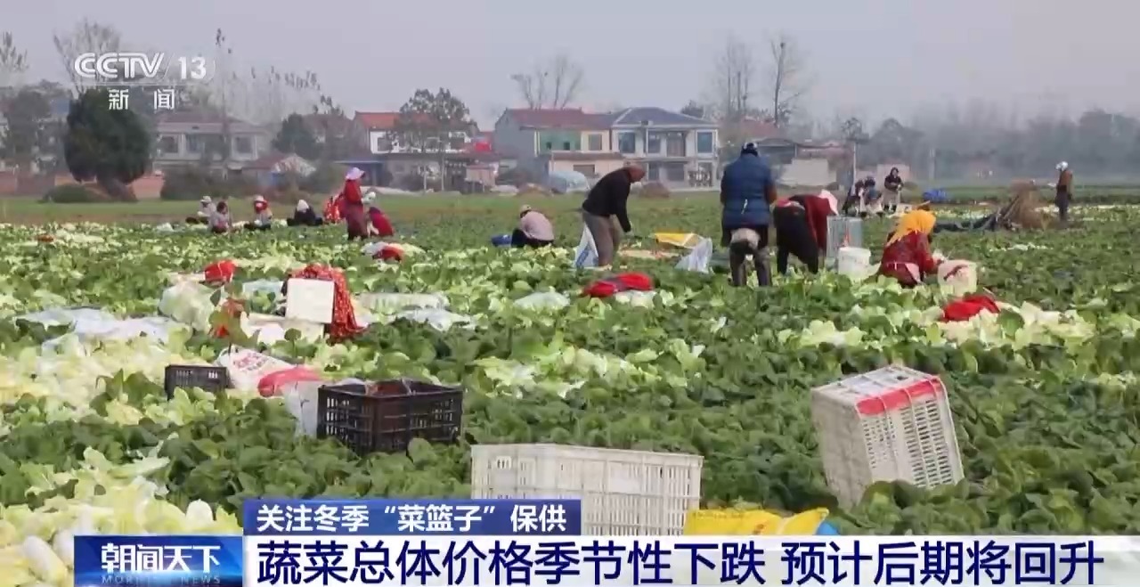临近元旦春节,节日效应逐步显现,蔬菜消费需求有望增加。由于蔬菜在田面积稳中有增,前期白菜、萝卜等冬储菜增产,蔬菜总体供应有保障,菜价大幅上涨可能性不大。(总台央视记者 梁丽娟 刘成)