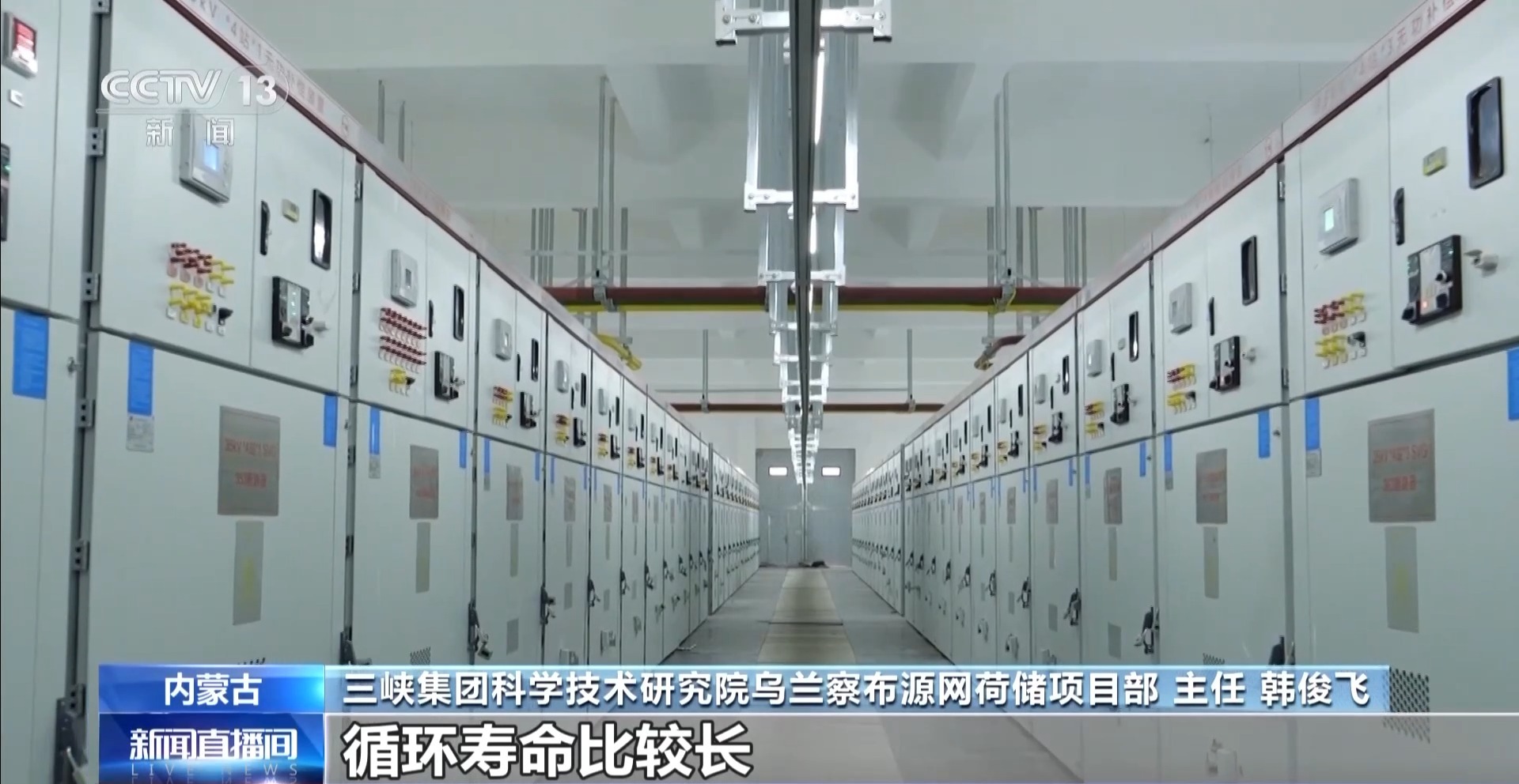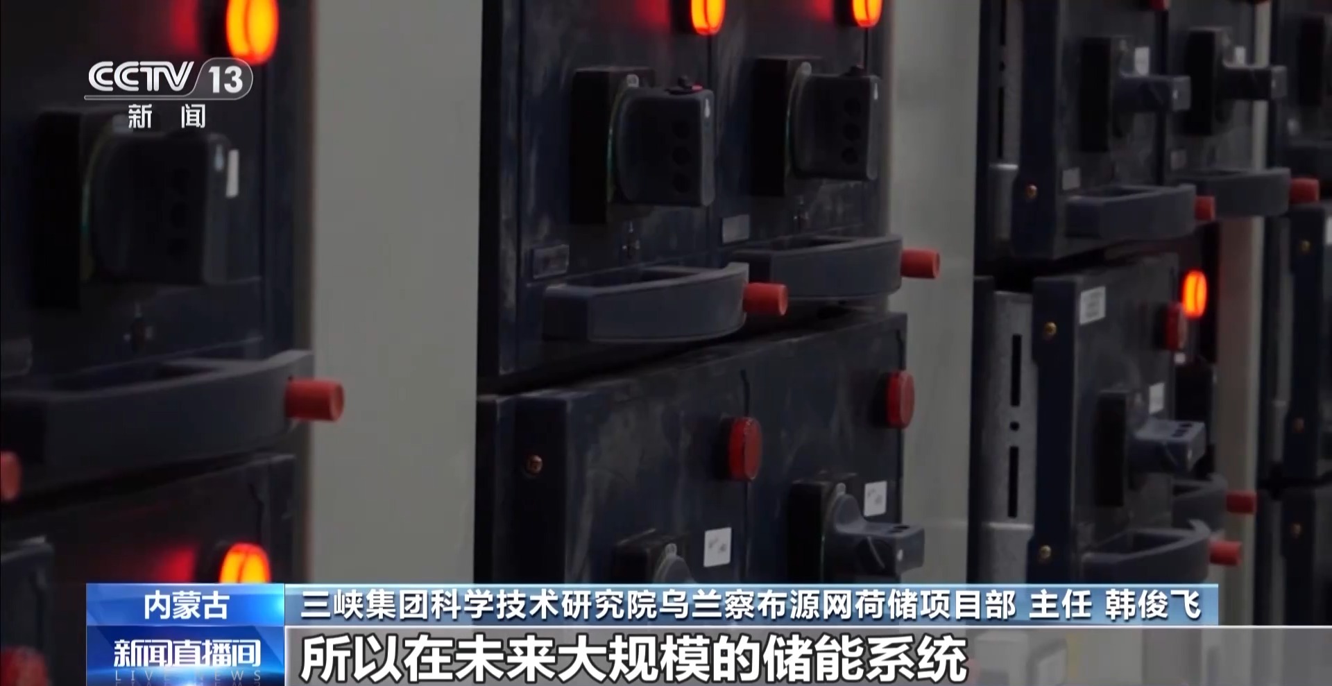 总台记者 修治国:在三峡乌兰察布“源网荷储”技术研发试验基地的储能实验室里,外形酷似集装箱的大家伙就是“储能柜”,每一个储能柜,代表着一种新型储能方式。自2020年起,三峡集团联合中国科学院、清华大学等20余所国内顶尖科研机构和院校,在这里进行实验,为未来不同场景下储能系统的大规模应用,寻找有效的解决方案。
