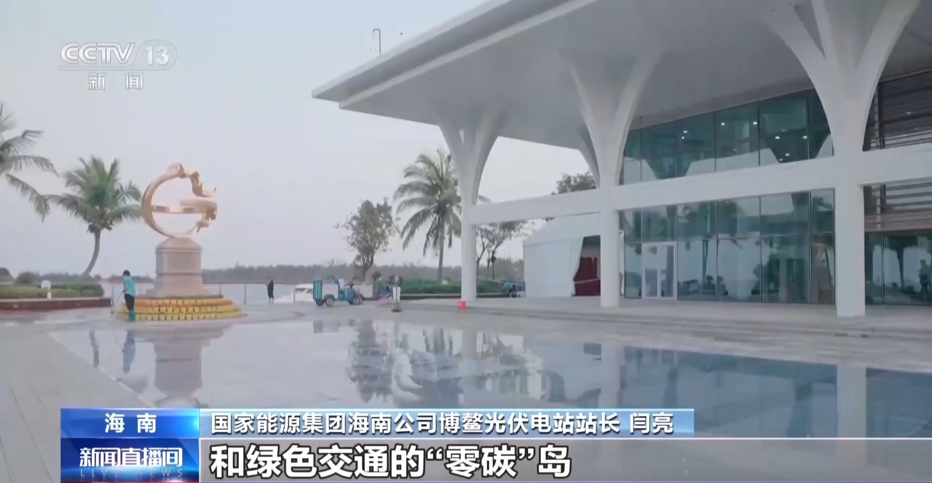 国家能源集团海南公司博鳌光伏电站站长 闫亮:我们将风电光伏和岛上的建筑、环境充分融合,让建筑从耗能变产能,让光伏设备变景观,构建了绿色发电、绿色建筑和绿色交通的“零碳”岛,项目每年可以提供清洁电能2946万度。