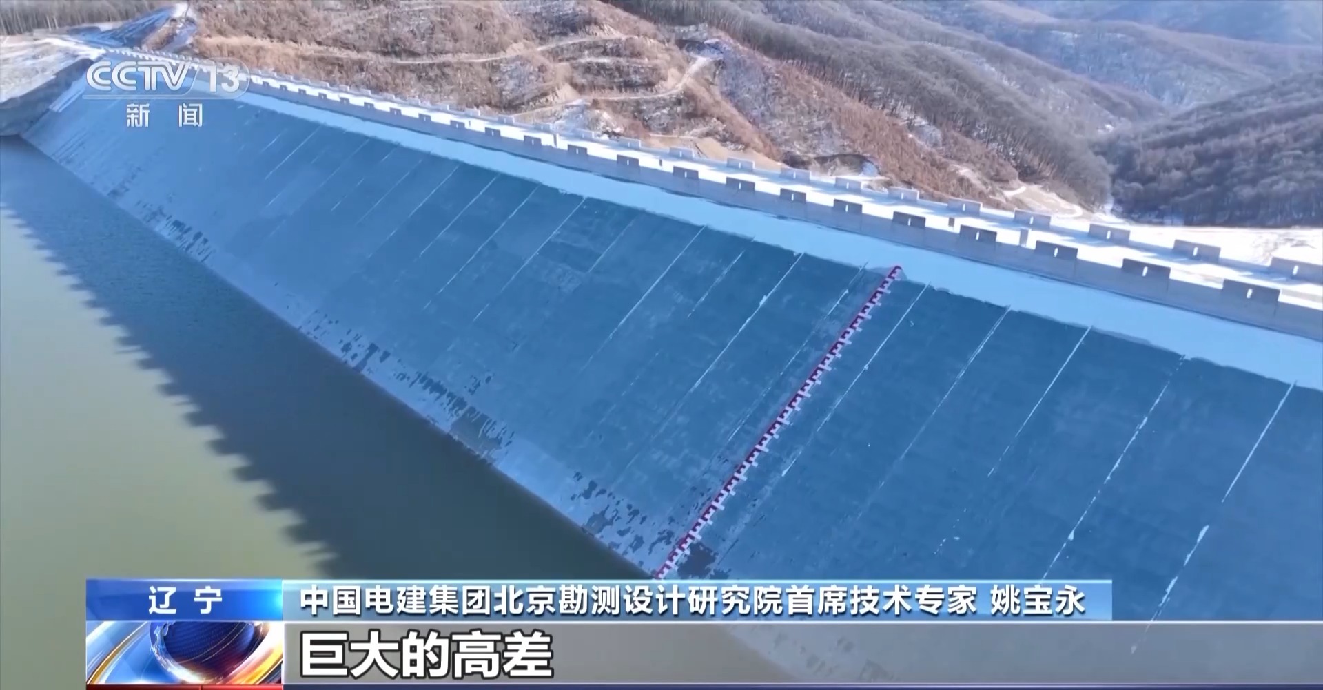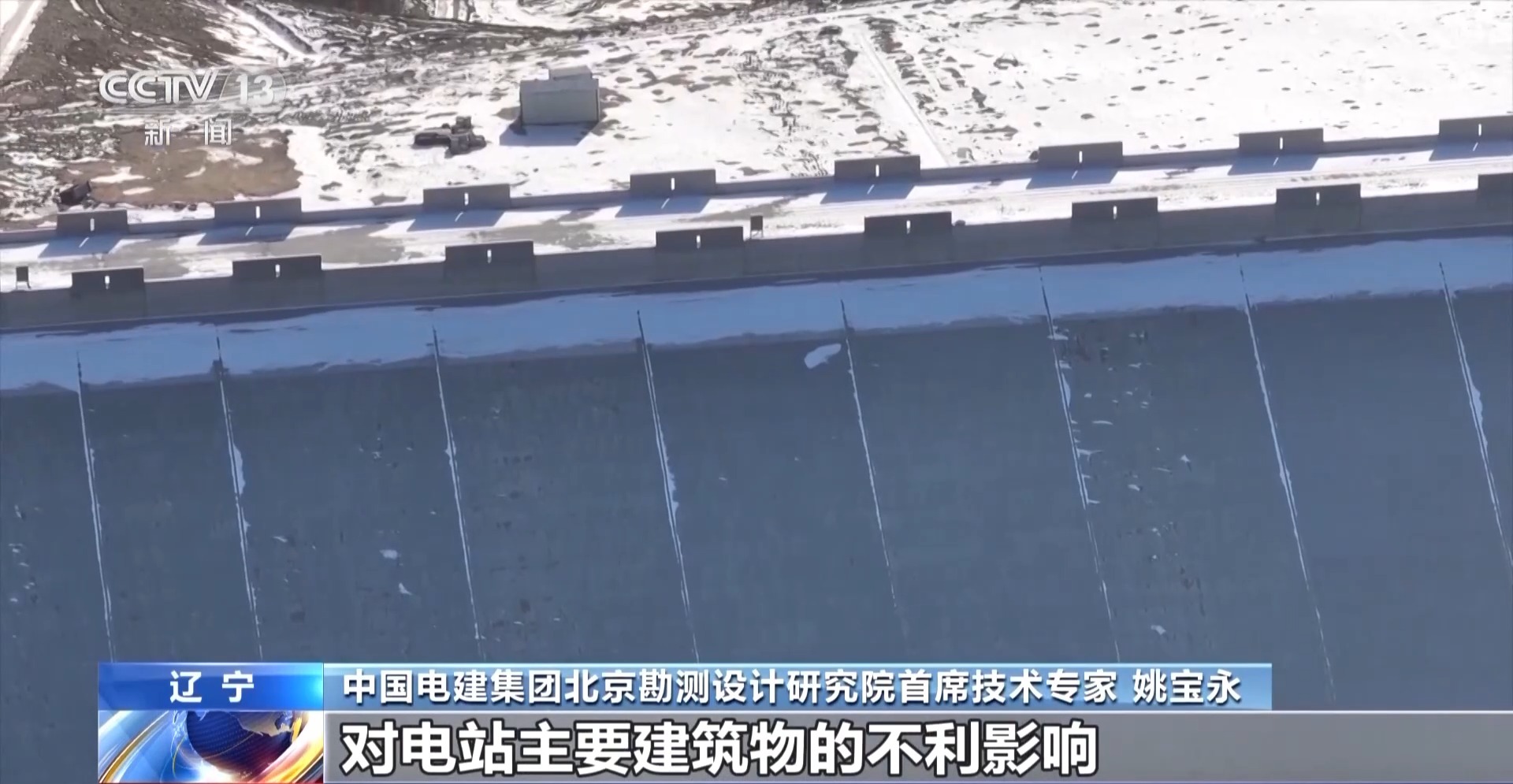 总台央视记者张丛婧:这座电站的外观还有个很大的不同,坝面上有个明显的积雪分界线,光滑的坝面几乎积不住雪,因为上面采用了防冰蚀材料。这里属于严寒地区,最低温将近-40℃,所以在建造的时候,工程师们就想方设法让它更抗冻。