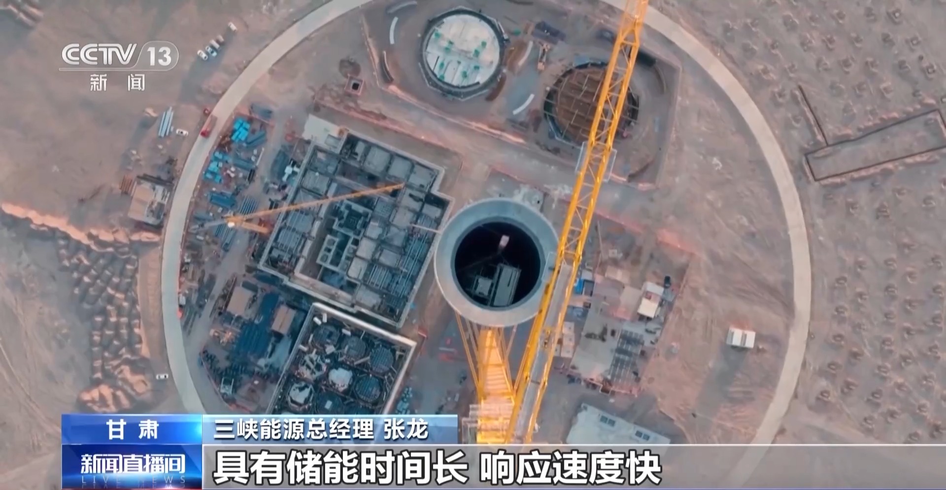 同样是加热熔盐把能量储存起来,在甘肃瓜州的全球首个“双塔一机”光热储能项目,利用将近3万块反射太阳光的定日镜,把太阳光的热能储存在吸热塔中的熔盐里,最终带动汽轮机发电。这样的发电不会受光照强度变化的影响,可以持续稳定生产电能。