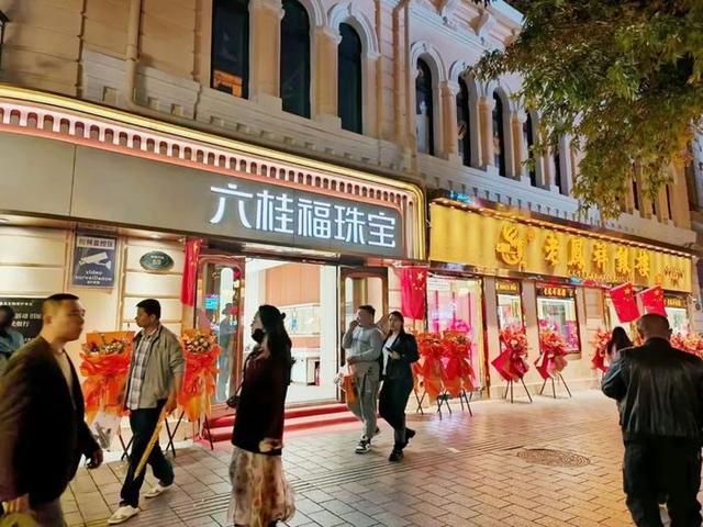 去年新开业的周大福和老凤祥,前者双店面打通,后者足有三层楼高,200g的古法黄金凤钗和金镶玉的如意在橱窗里一躺,摆明了就是“财大气粗”四个大字。