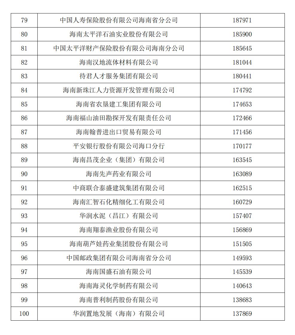附:2023海南省企业100强名单