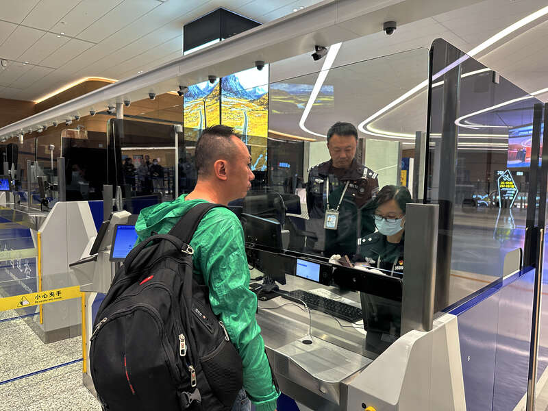 首航时,成都出入境边防检查站细化勤务安排,科学配置执勤警力,加强巡逻巡查,安排专人进行分流引导、解答旅客咨询,保障了首航旅客高效顺畅通关。