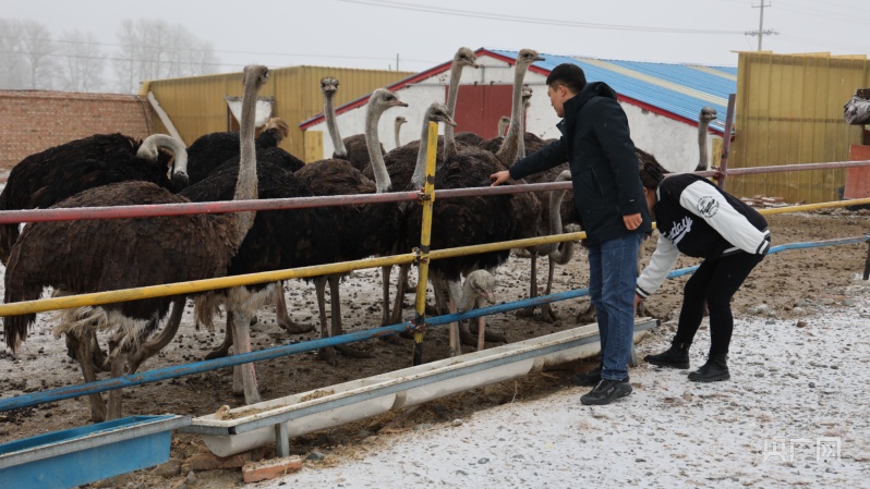 养殖户在查看鸵鸟状态 (央广网发 包鲁斯别克 摄)