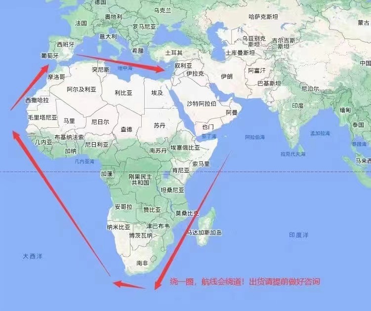 不少经停红海的集装箱船改为绕道好望角。转自宁波物流企业朋友圈