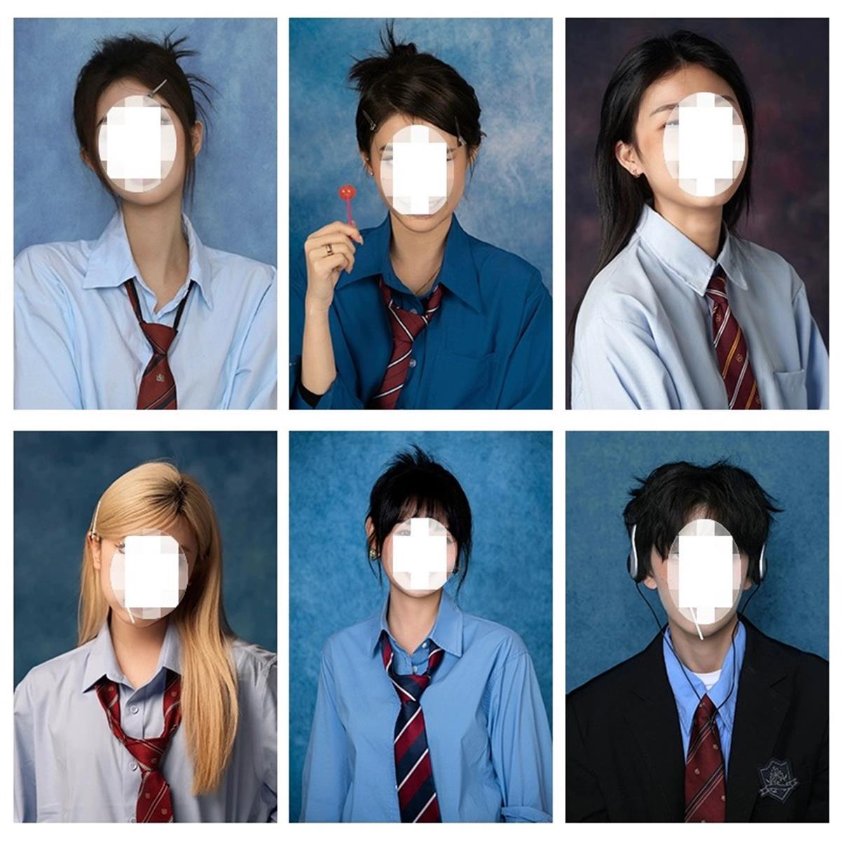 早在今年5月,美式毕业照就流行于网络。不同于职业照,美式毕业照的元素更显年轻,百褶裙、领带、乐福鞋和西装外套成为标配。这种照片通常是藏青色的背景,人物周边会出现白色虚化,以衬托人像。如果是大学毕业季,学生们还会穿着学术礼服、戴流苏的学术帽、配饰包括毕业证书等入镜,为自己的学生生涯留下美好的纪念。