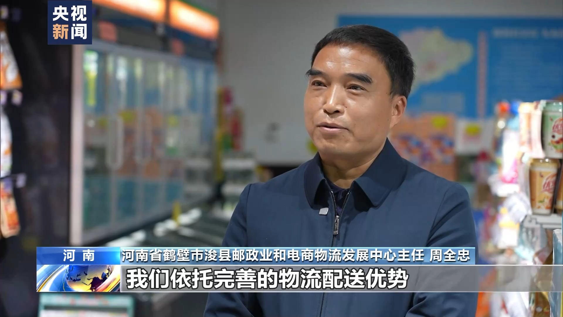 河南省鹤壁市浚县邮政业和电商物流发展中心主任 周全忠:我们依托完善的物流配送优势,采取集采的模式,建立了商业供应链云仓。像这个店的土特产,就可以通过我们的村级站点,为在外求学上班的子女和亲戚朋友就近邮购。