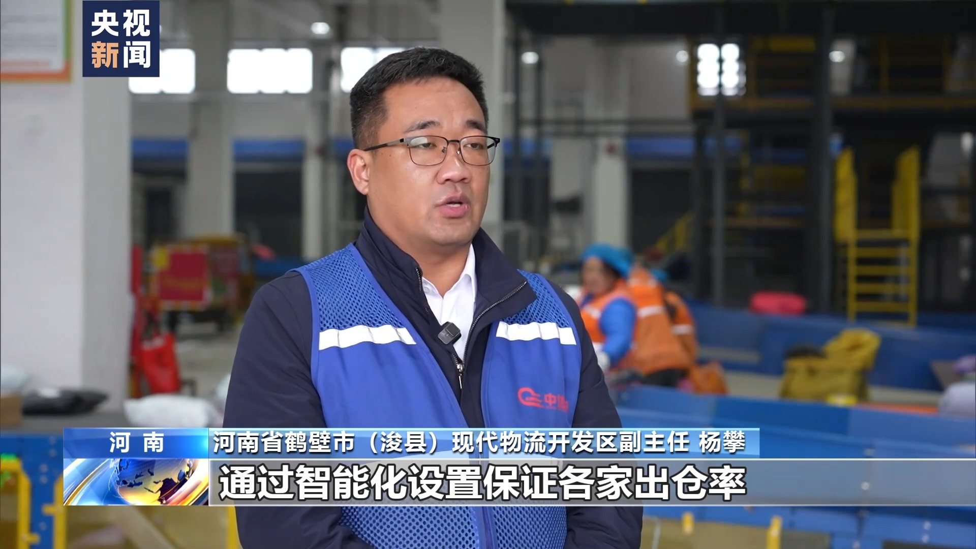 河南省鹤壁市(浚县)现代物流开发区副主任 杨攀:通过智能化设置保证各家出仓率。有的八点、有的八点半,这样效率高、准确率高。同时我们又尝试早上六点和中午一点进行分拨分拣,总体单量一下子就起来。