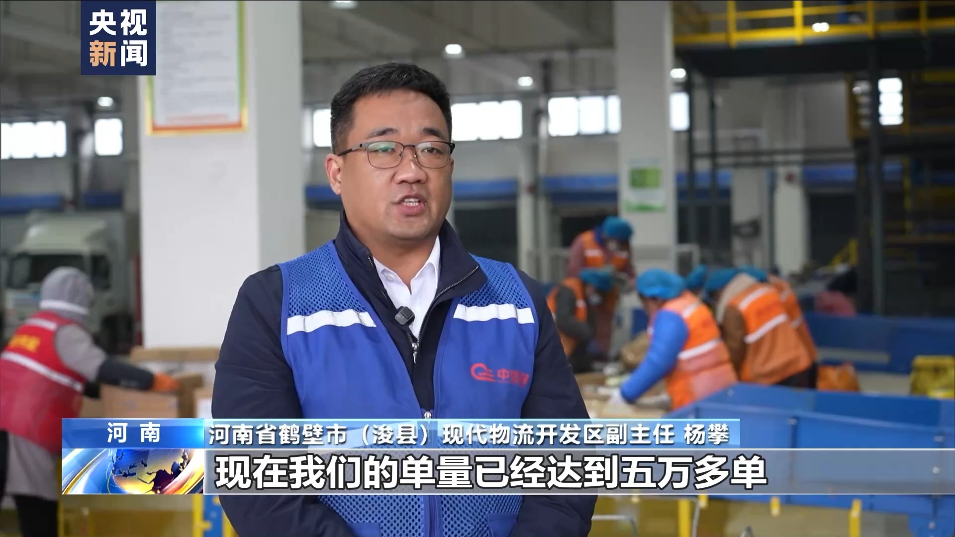 河南省鹤壁市(浚县)现代物流开发区副主任 杨攀:现在我们的单量已经达到五万多单,天不亮就开始工作,就是为了两个小时内完成分拣分拨,让消费者上午下班之前拿到第一波快递。