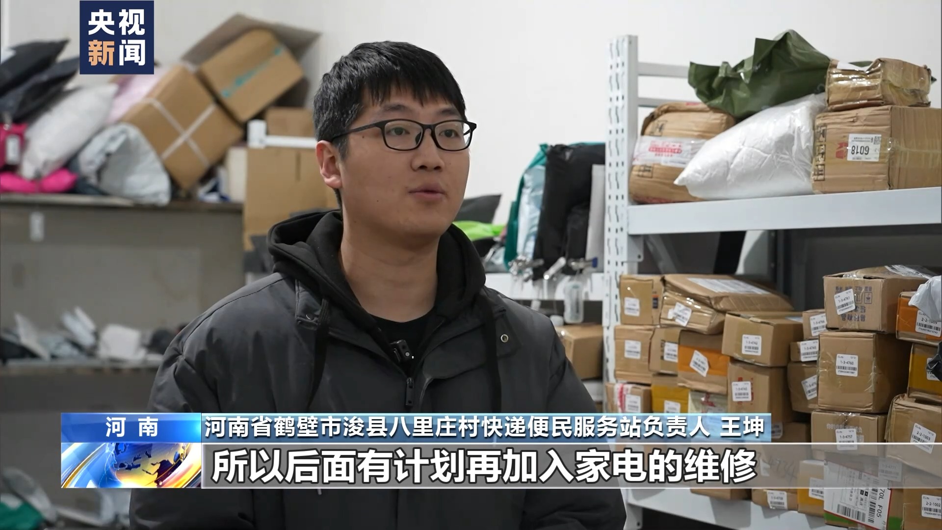 河南省鹤壁市浚县八里庄村快递便民服务站负责人 王坤:现在也还想让业态再丰富丰富,所以后面有计划再加入家电的维修,还有燃气费的缴纳、水电费的缴纳。