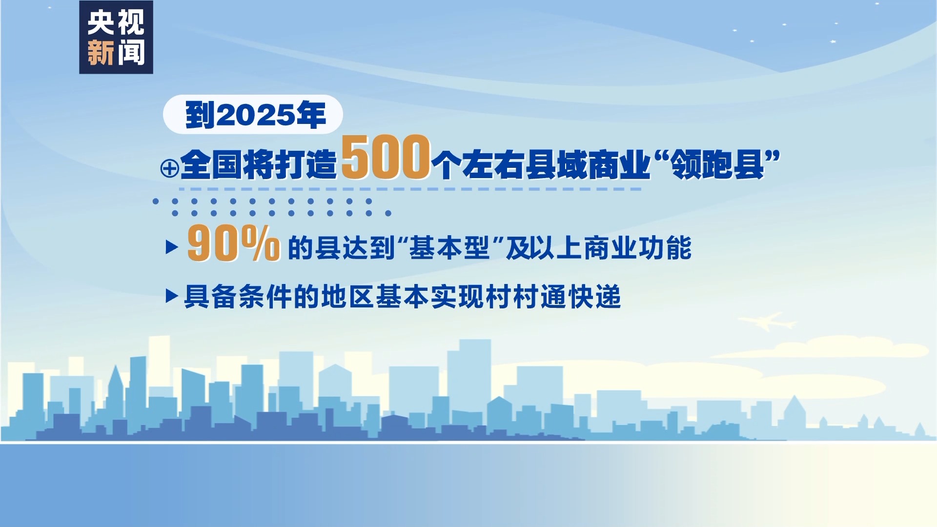 按照规划,到2025年,全国将打造500个左右县域商业“领跑县”,90%的县达到“基本型”及以上商业功能,具备条件的地区基本实现村村通快递。