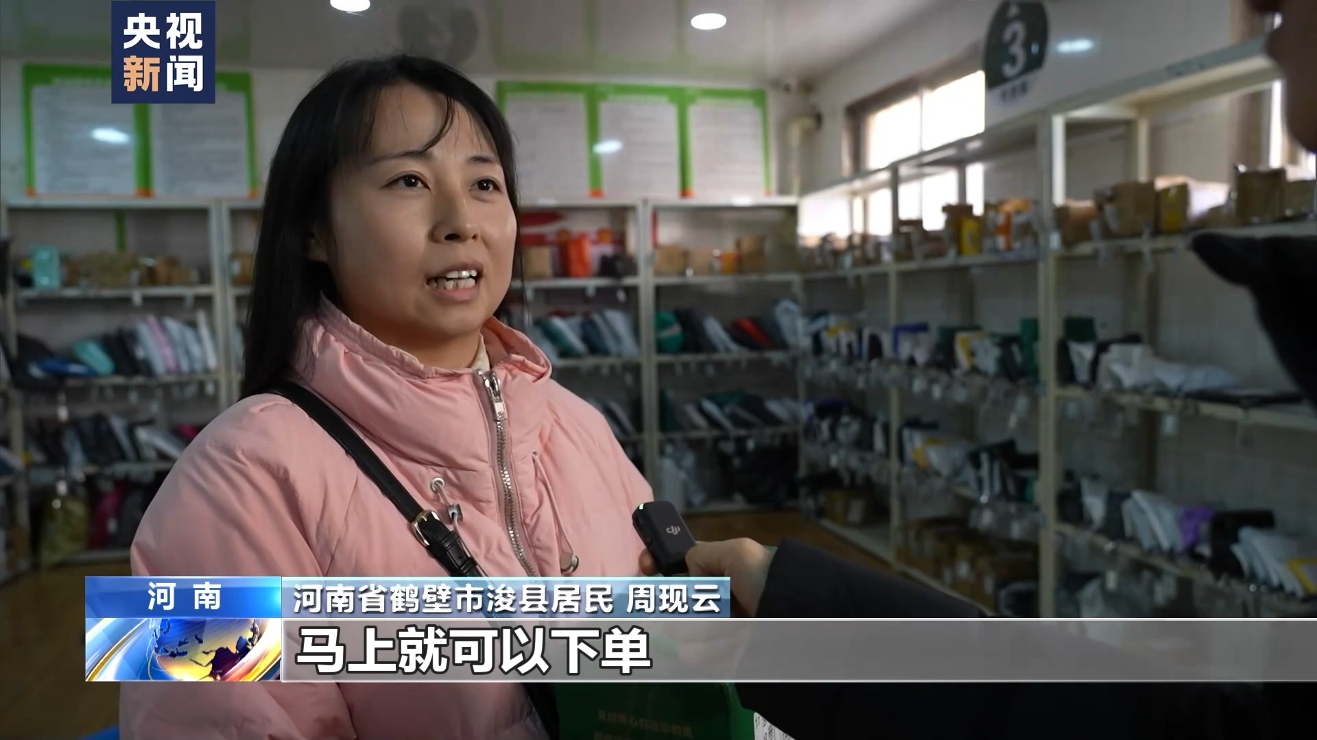 河南省鹤壁市浚县居民 周现云:没有任何顾虑,马上就可以下单。(以前)就觉得买不到,或者说咱们这没有,(现在)一般就是第一天买,第二天就能收到,就可以直接使用,挺方便的。