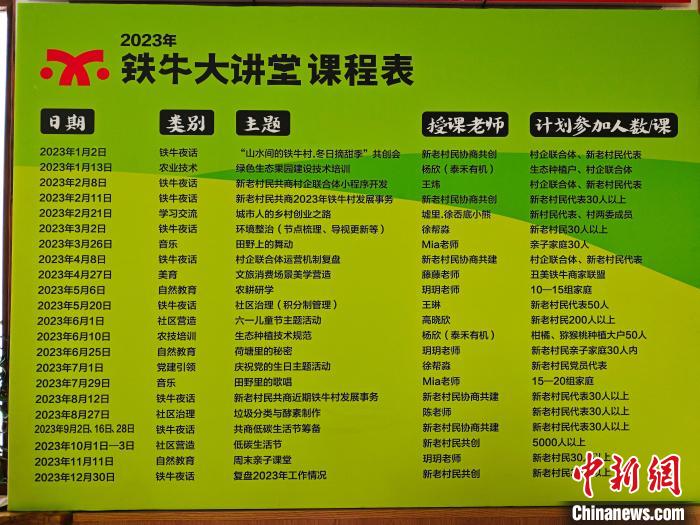 在和美方面,铁牛村积极探索新老村民协商共建机制,不断深化新老村民融合。以“田野里的歌唱”为主题的音乐会、以“新老村民共商村企联合体小程序开发”为主题的讨论会、以“生态种植技术规范”为主题的农技培训……在村里活动室内,“新村民”主讲、新老村民共同参与的“铁牛大课堂”每个月至少开展一次,覆盖农村生活各个领域,不断拉近着新老村民的距离。