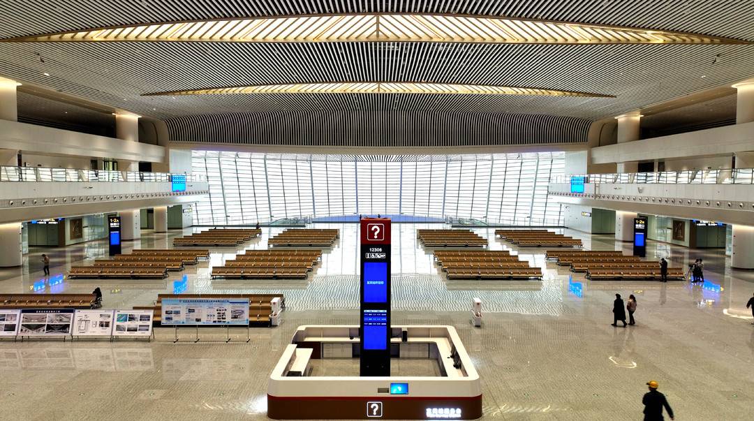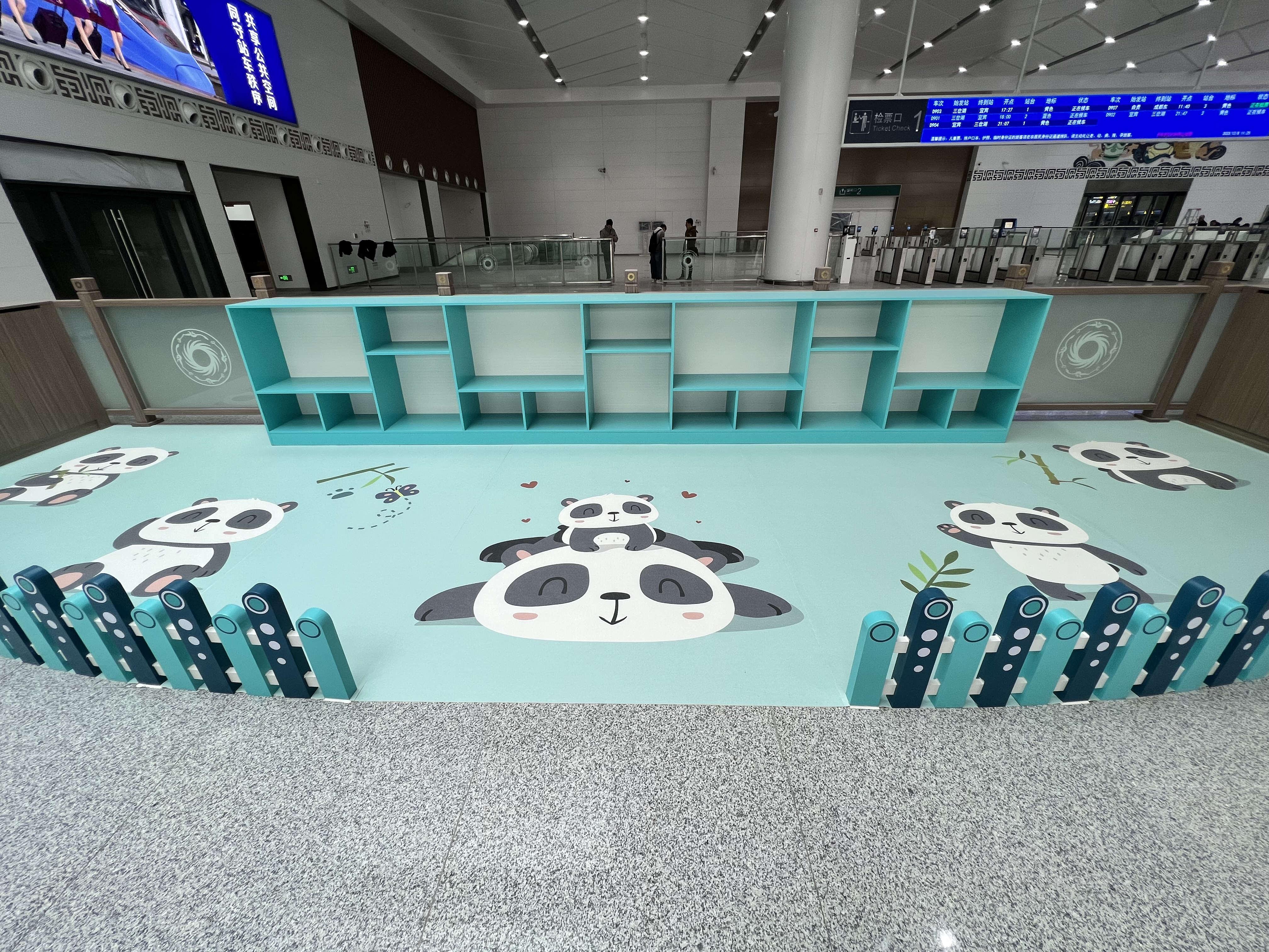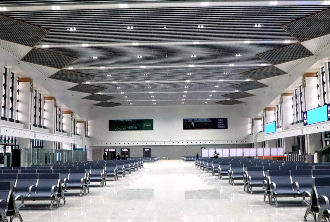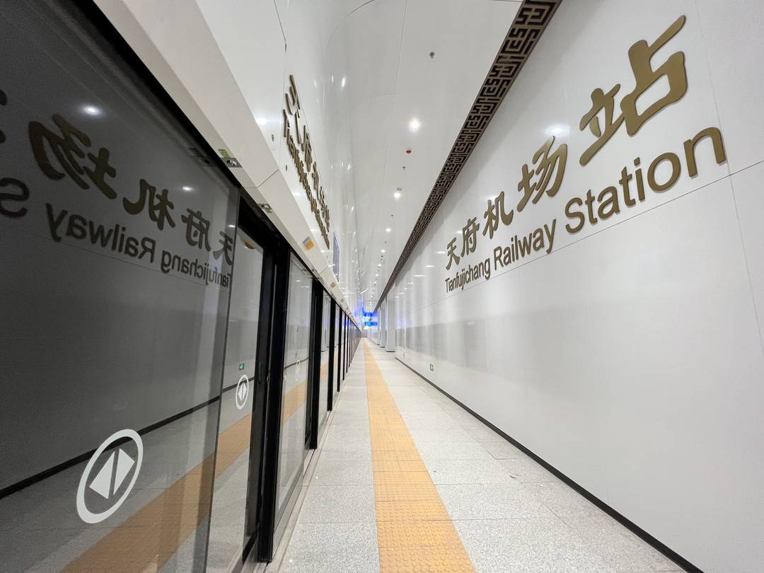 天府机场站位于成都东部新区,总建筑面积11.15万平方米,分为地上两层、地下两层,2台6线。在天府机场站大厅内,梁柱、地面设计有蜀道纹、大熊猫等元素,展现出古蜀独特文化韵味;站房整体极具流动感、现代感,实现了传统和现代的完美融合。