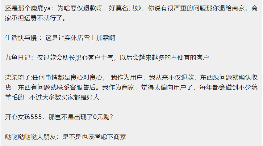 “仅退款”在很大程度上保护了消费者权益,但也对于商家来说,也意味着不确定性和风险。比如今年3月,因为“仅退款”机制导致拼多多部分商家积怨很深,最终导致集中反抗,数十家品牌店就遭遇了有组织的“炸店”。