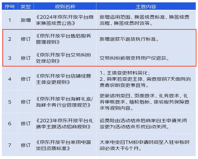 另外,京东近期修订《京东开放平台交易纠纷处理总则》,主要内容为交易纠纷新增支持用户仅退款。据了解,此前在京东,消费者仅能申请换货和退货退款。