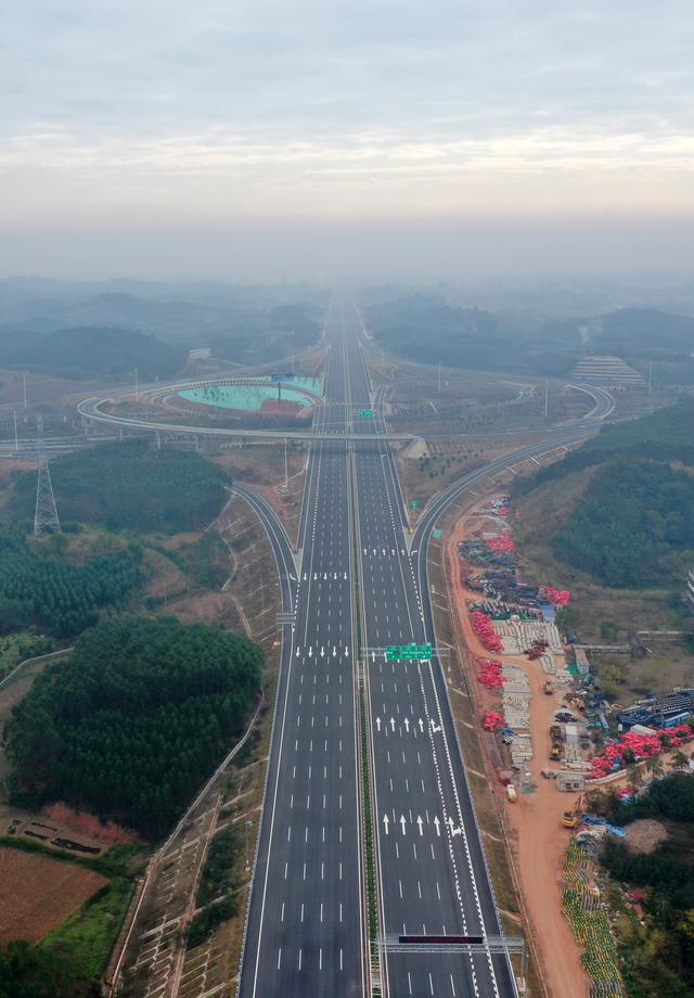 这是12月31日拍摄的广西岑溪至大新高速公路横州至南宁段(无人机照片)。新华社记者 陆波岸 摄