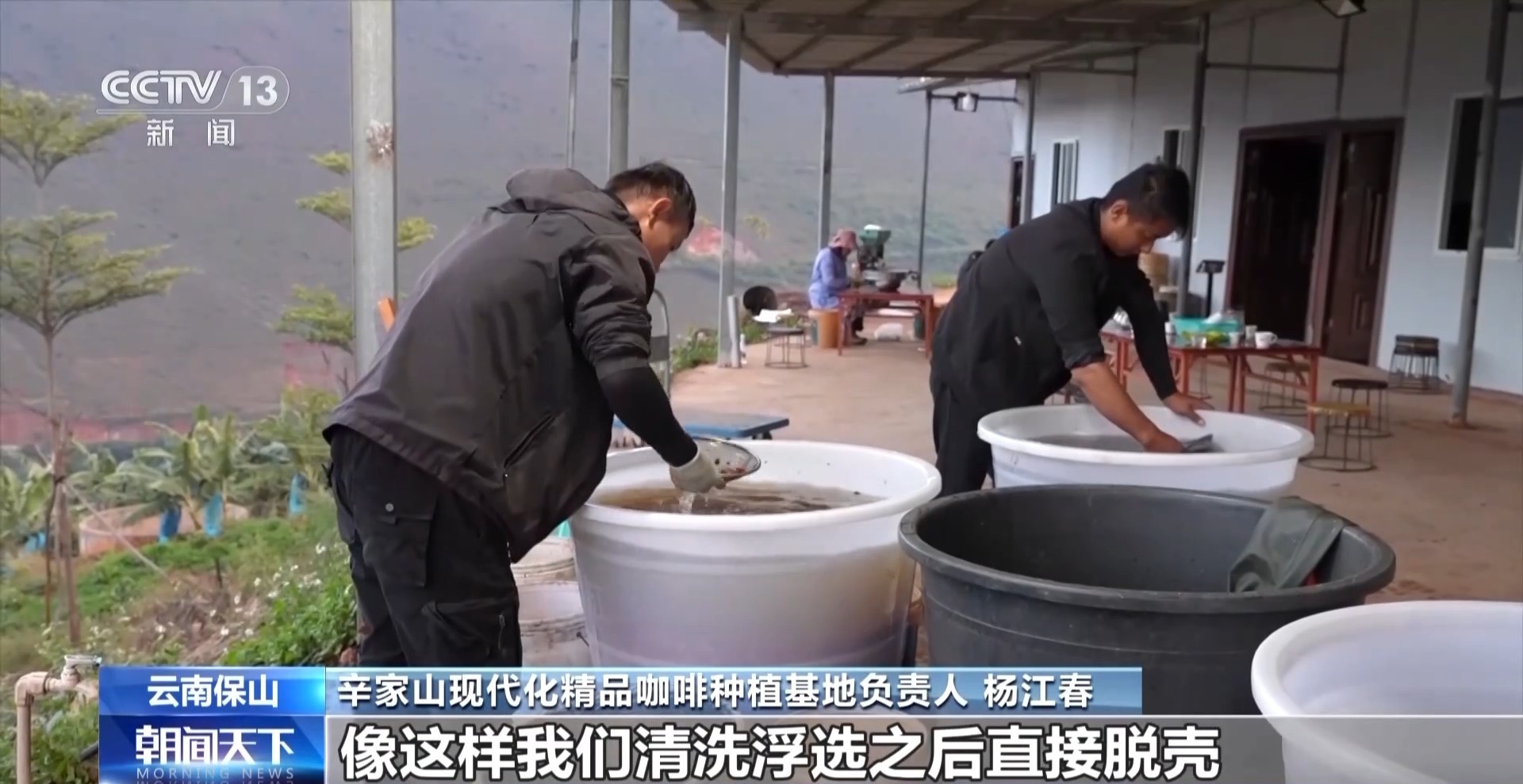 总台记者 王溪:红彤彤的咖啡鲜果从咖啡地里采摘回来,其实只是精品咖啡初加工的第一步,之后将根据客户的不同需求,用不同的方式进行初加工。