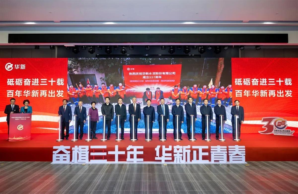 奋楫三十年,华新正青春。1月3日,华新水泥股份有限公司举行上市30周年暨成立117周年大会。中国建筑材料联合会、湖北省直有关单位、黄石市主要负责同志与华新员工一道共同见证华新上市30周年暨117岁华诞的高光时刻。