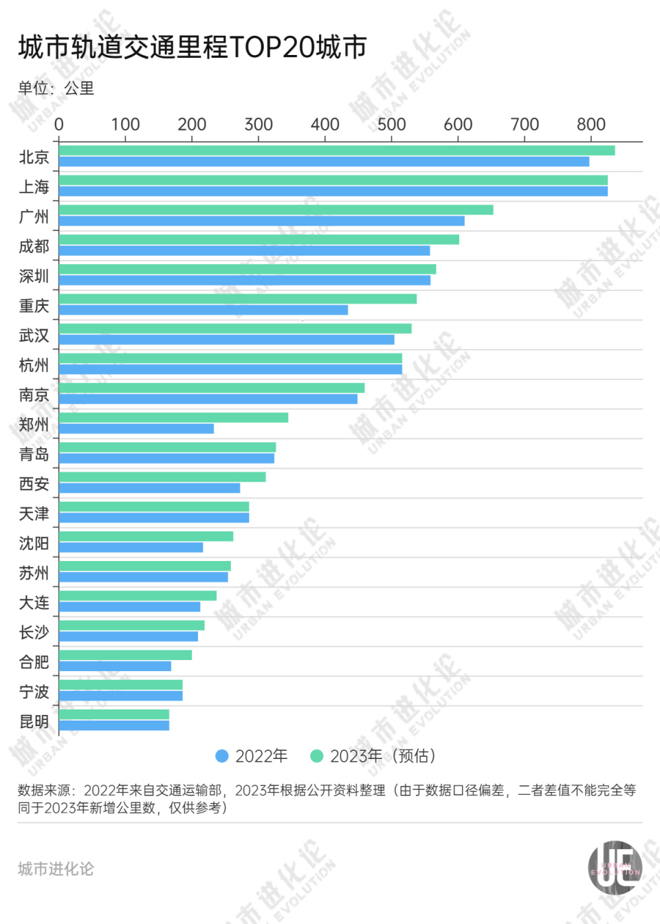 眼下,北京、上海都在冲击“1000公里俱乐部”。而在北京、上海的巅峰对决之外,更多超、特大城市轨交里程仍在不断延长。截至2023年,伴随重庆的突破,“500公里俱乐部”已扩容至8座;成都超越深圳、武汉超越杭州、重庆超越南京、郑州超越青岛,城市排名亦不断轮换。