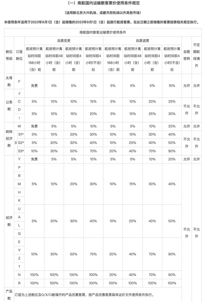 以提前168小时(7天)自愿退票为例,新版规则中新增头等舱、公务舱J舱位、明珠经济舱W舱位以及经济舱Y舱位免收手续费,而按照旧版规则所有舱位均需要一定的手续费。