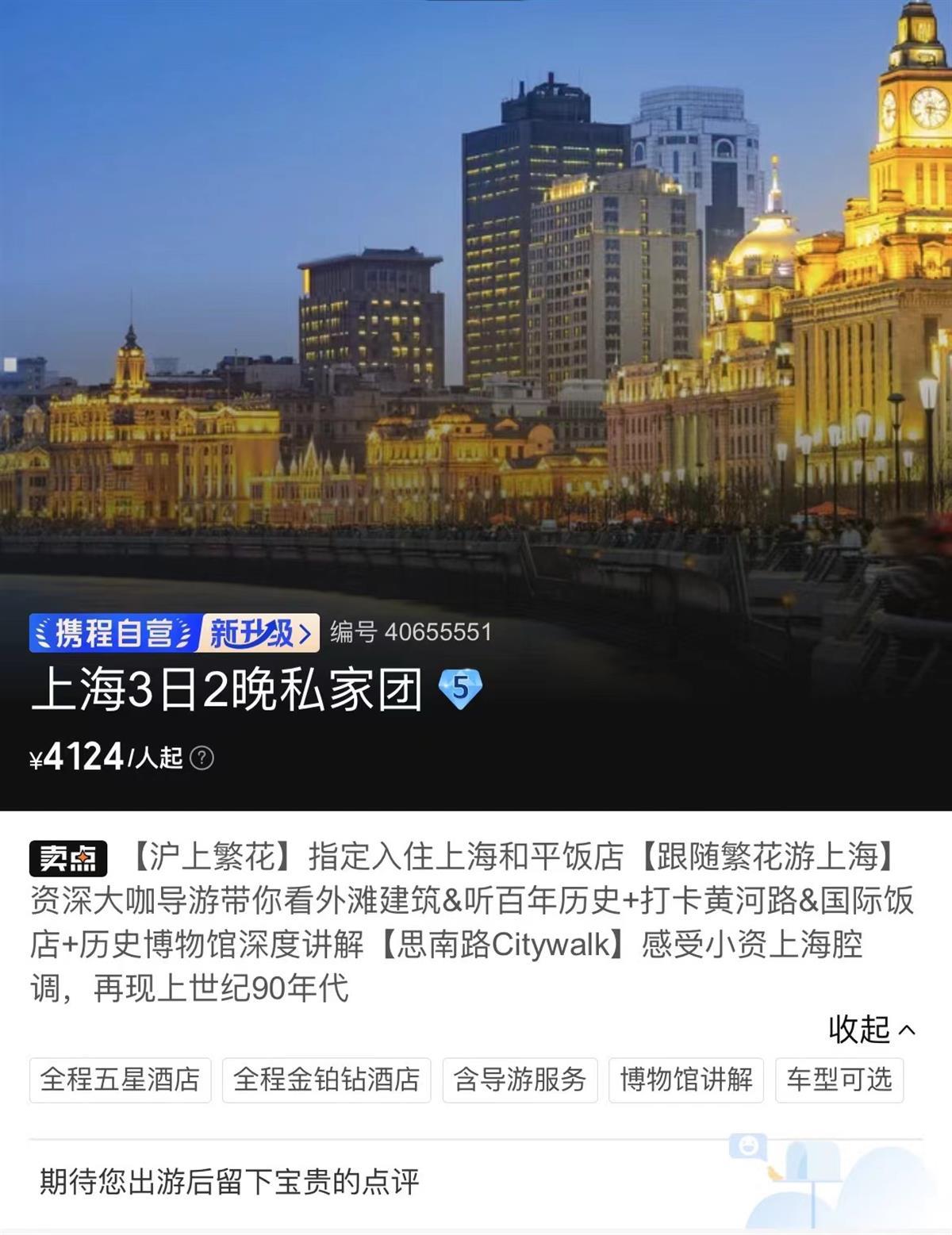 极目新闻记者看到,有旅行社推出上海两日一晚的繁花私家团,打卡剧中同款场景、入住和平饭店、品尝剧中同款小吃。还有游客自己设计线路,跟着《繁花》在上海Citywalk成为不少追剧人的日常。