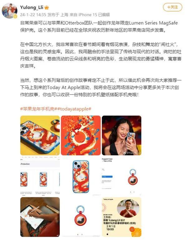近日,苹果也在官网上架了全新龙年款手机壳,售价498元,适配iPhone15系列。据了解,该系列手机壳出自常年为iPhone、iPad等苹果产品打造保护壳的厂家——OtterBox,由知名插画师YulongLli绘制。