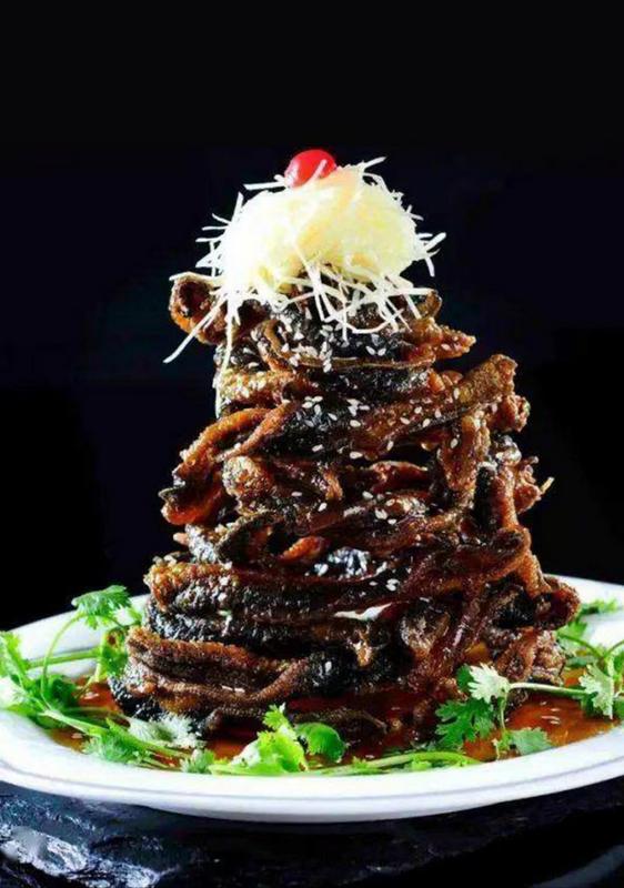 梁溪脆鳝又名无锡脆鳝,是无锡当地一道传统名菜。节目中,杨智杰介绍道:“它最早来源于无锡船菜,以前船老大开船去太湖会在船上制作这道菜,它的做法也是鳝鱼菜中最为特别的,在全国独一份。后又经惠山脚下一菜馆改进,老板抬头看到了龙光塔,灵机一动,便将脆鳝摆成了宝塔形状,非常漂亮。”