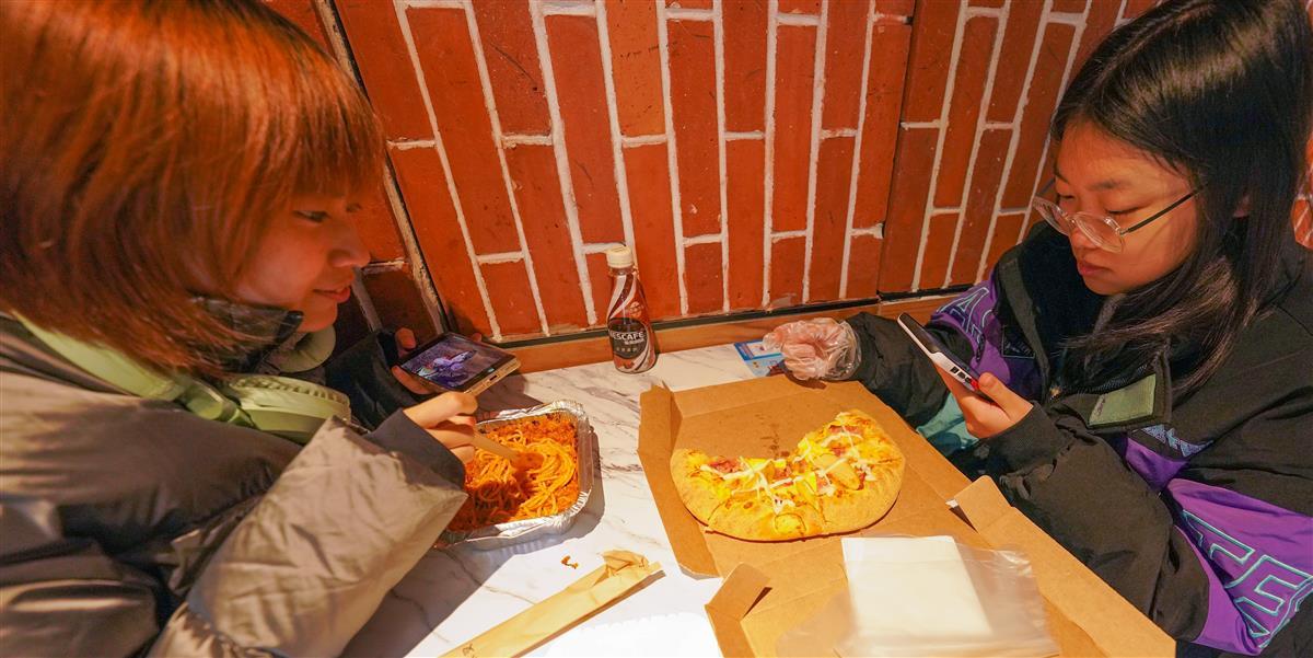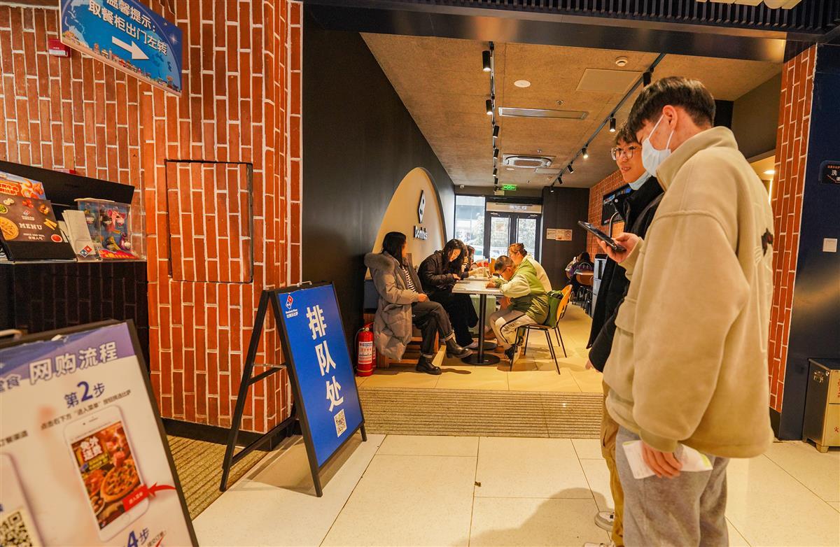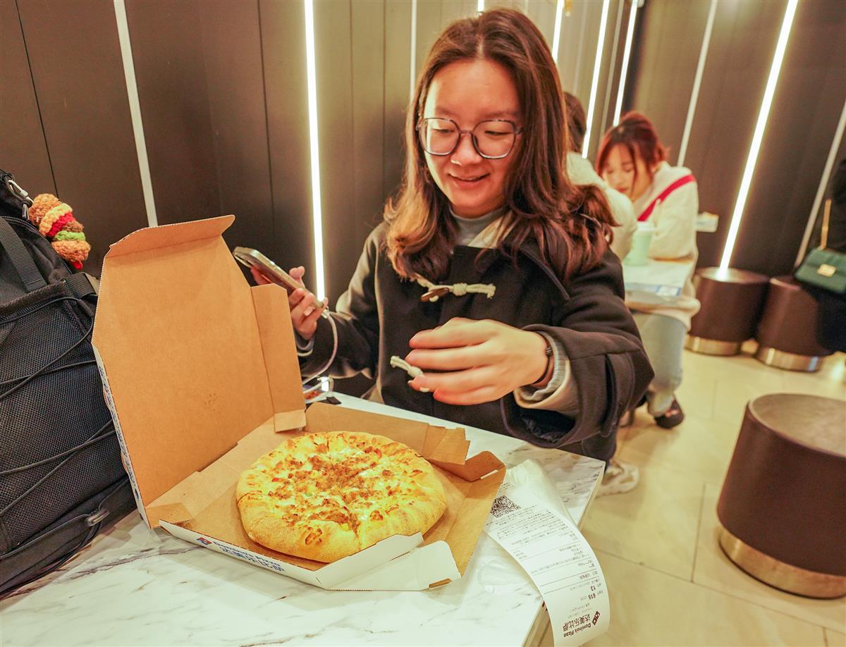 1月31日,在武汉达美乐比萨光谷天地店,家住光谷的贾女士提前通过微信小程序给孩子预订了一款金沙咸蛋黄嫩鸡比萨,“今天是周三,有7折优惠活动,我每次都会趁着折扣日给孩子预订比萨。”