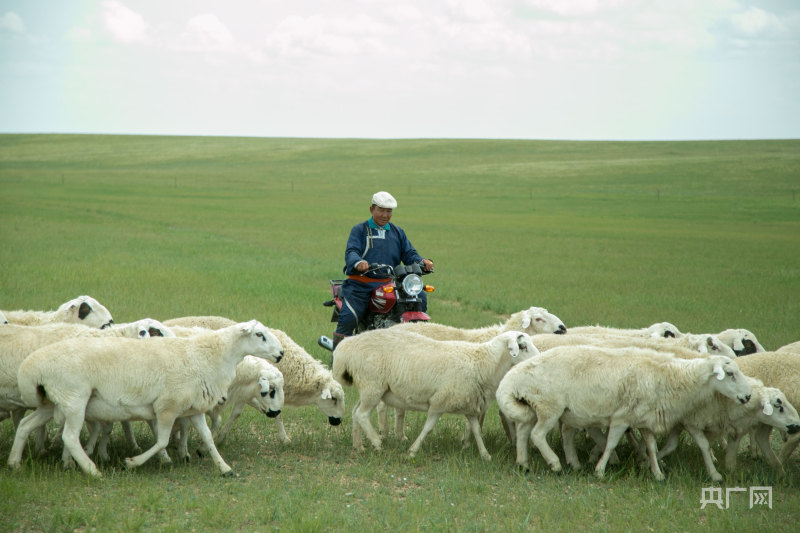 牧民骑着摩托去放羊(央广网发锡林郭勒盟融媒体中心供图)