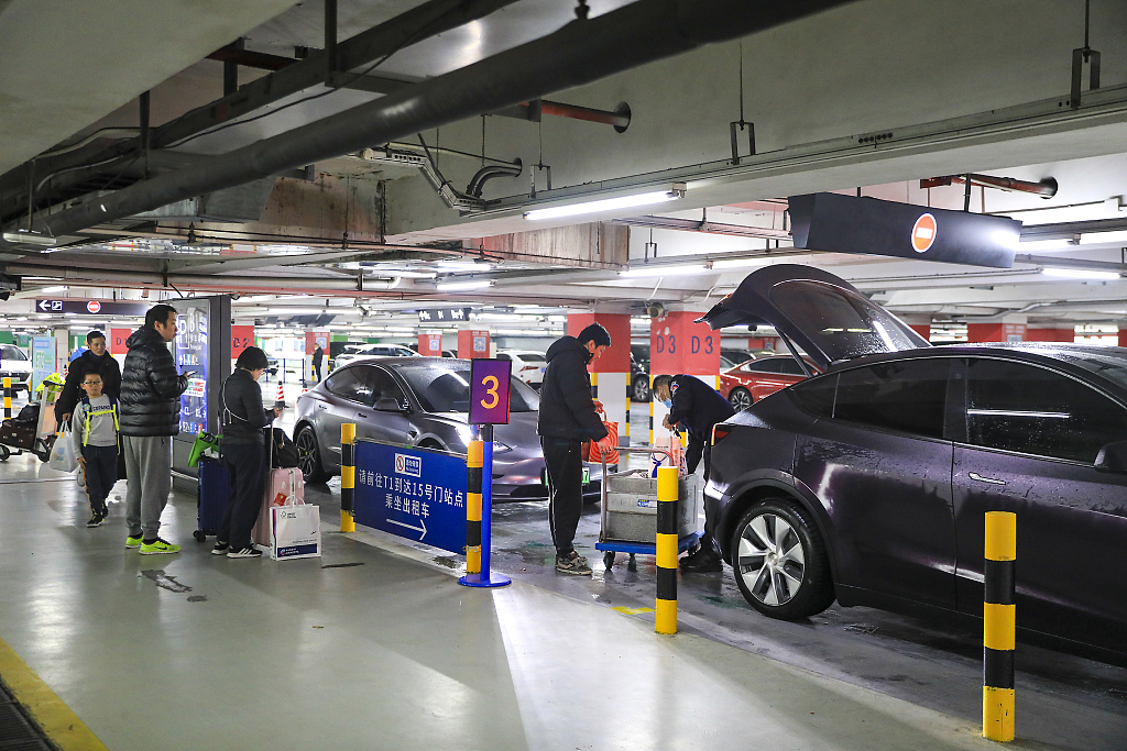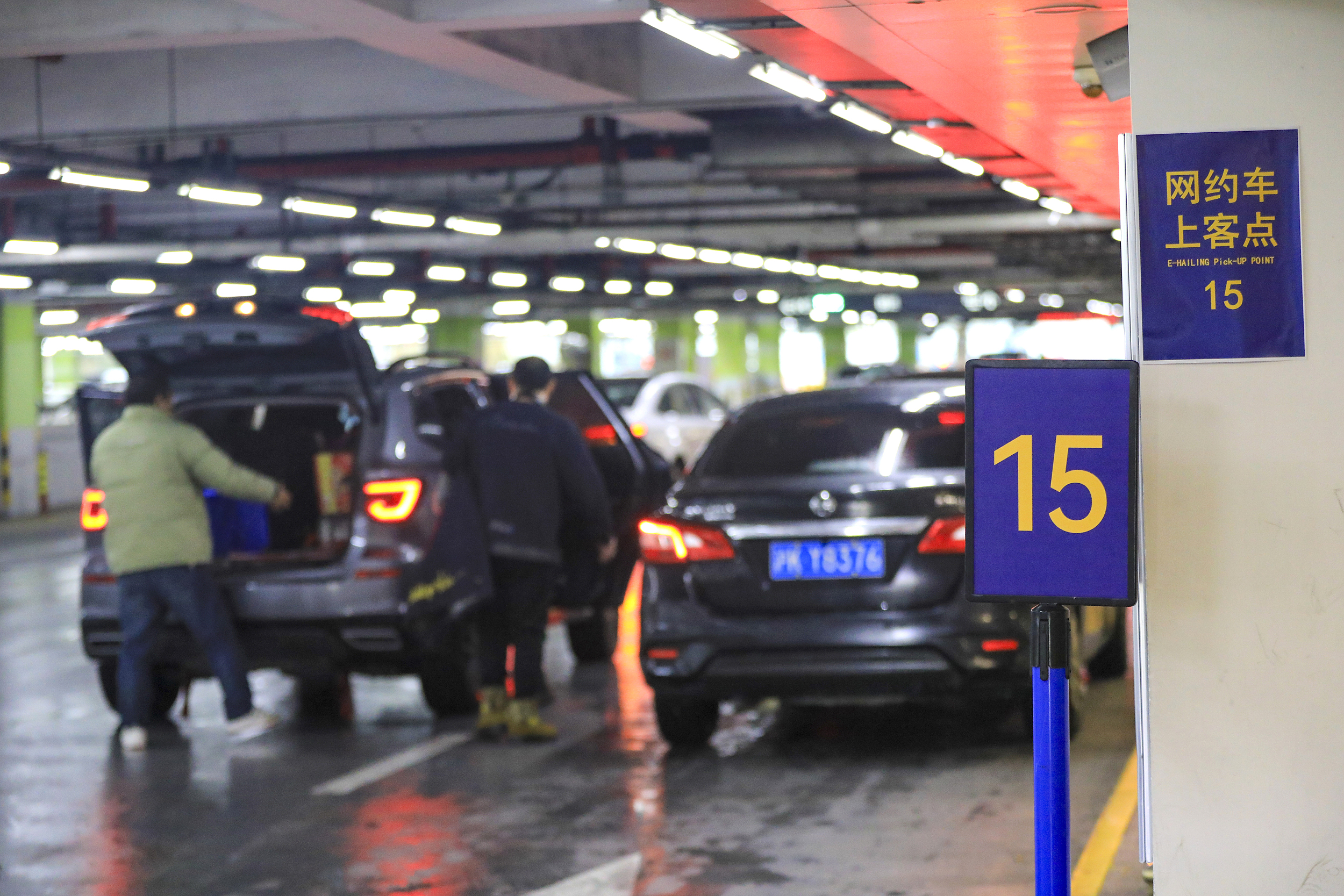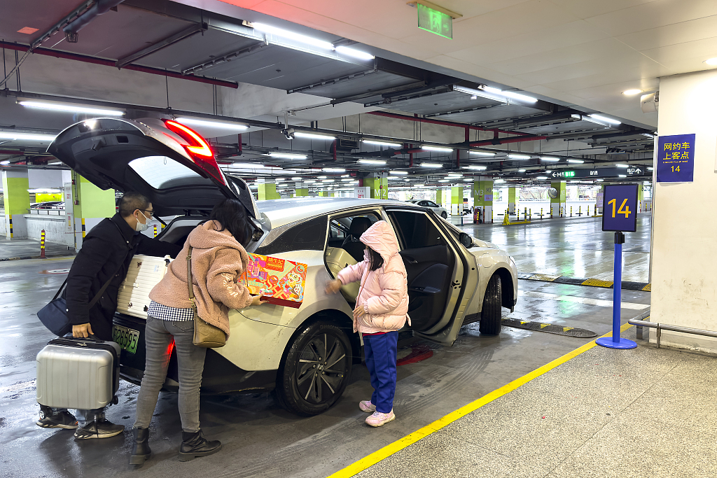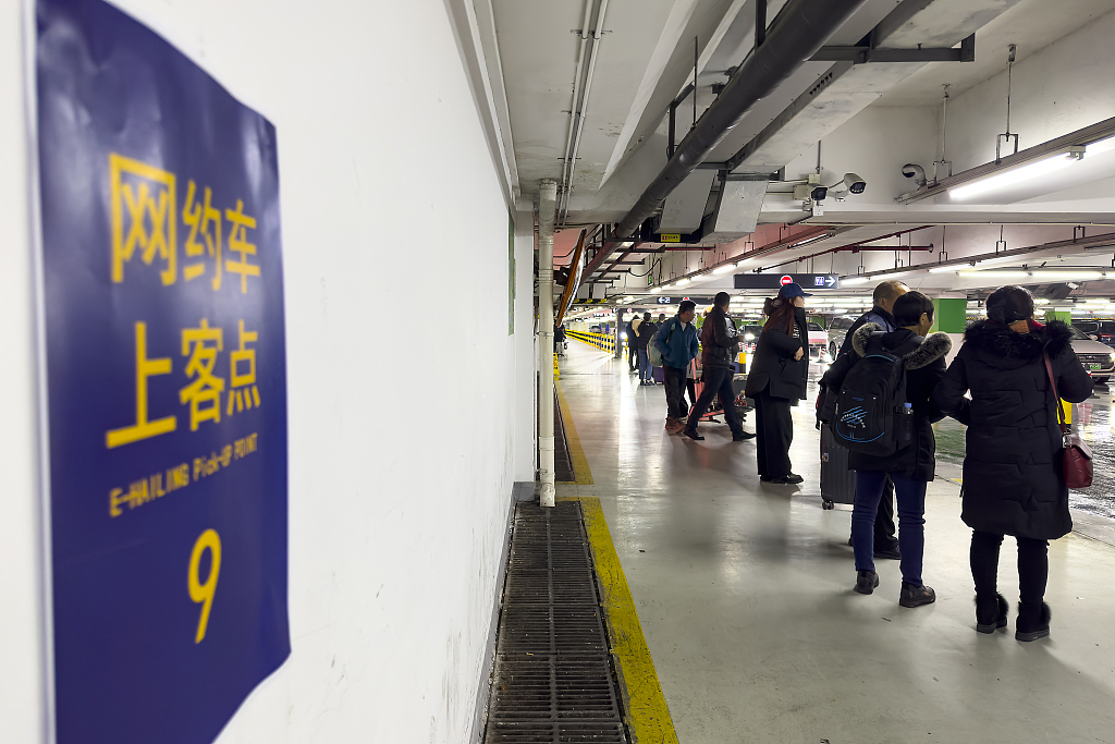2024年2月4日,上海浦东国际机场,市民在“网约车上客点”停靠区打车。