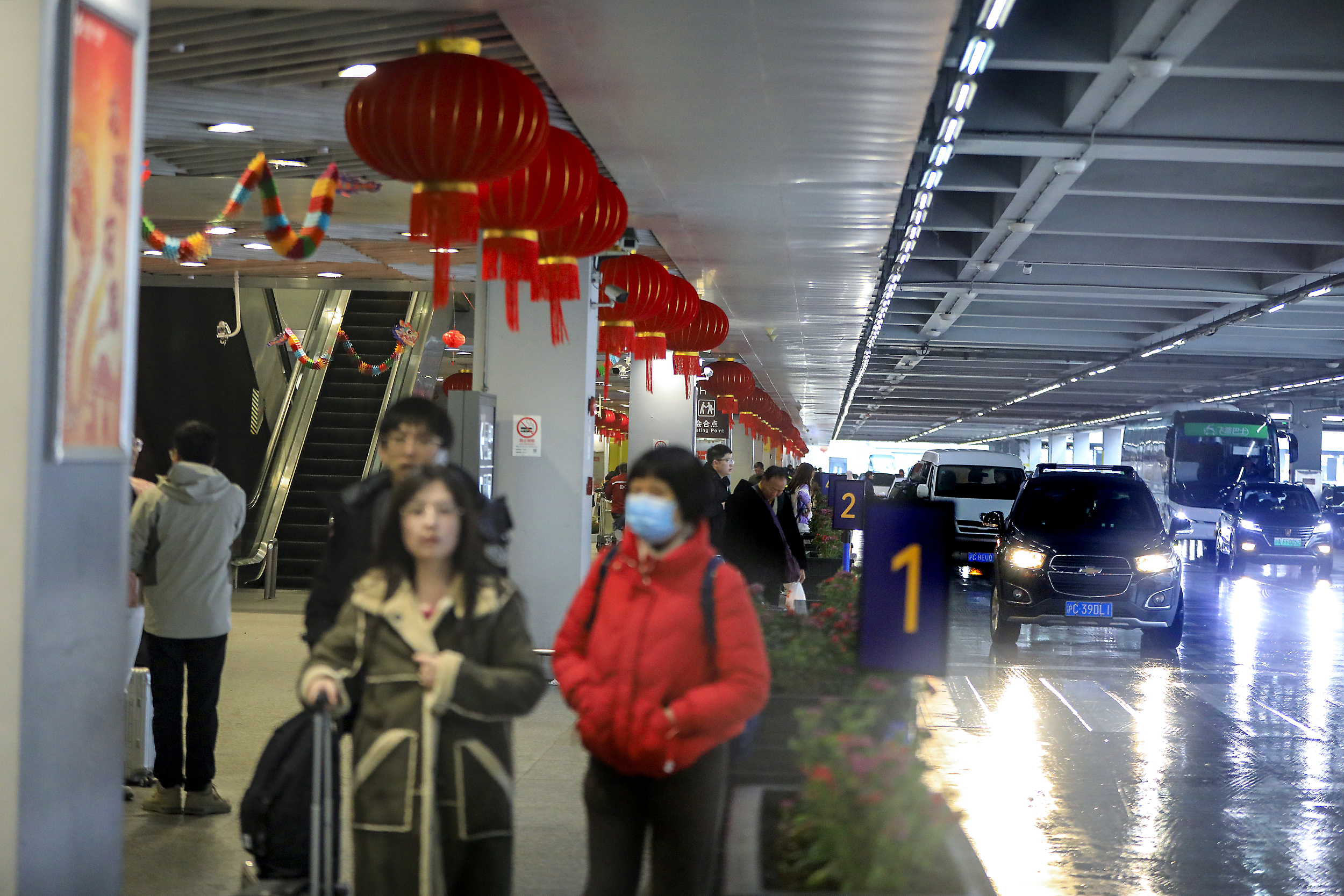 2024年2月4日,上海浦东国际机场T2航站楼,旅客在“网约车上客点”停靠区上车。