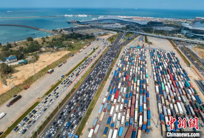 中新网海口2月6日电(记者王晓斌李宇凡)今年春运以来,琼州海峡客滚运输持续高位运行。记者2月5日走访海口新海港等轮渡港口发现,货车先到先走;小车按发船时间提前不超过3小时到港,车辆进港之路忙而不乱。