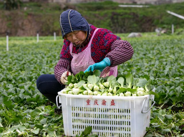 2月6日,在重庆市南川区南城街道清泉社区的蔬菜种植基地,菜农采摘蔬菜,准备外销。 新华社发(罗川 摄)