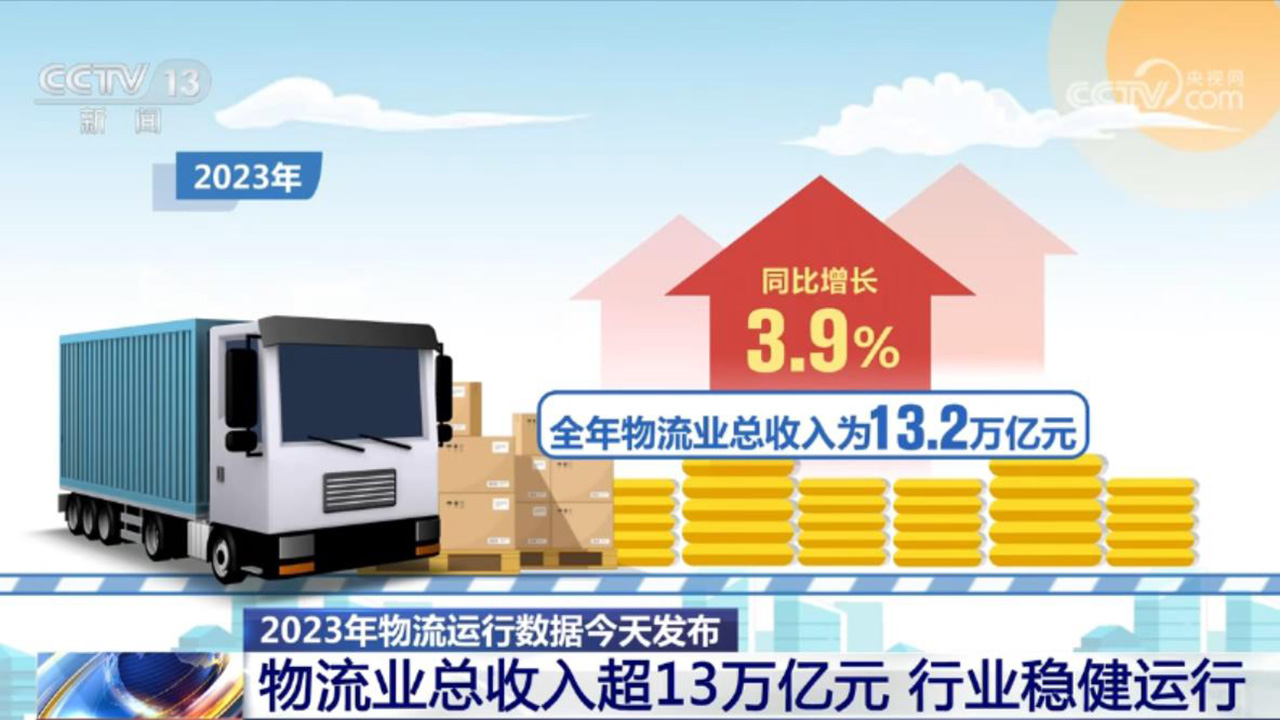 2023年全年,物流业总收入为13.2万亿元,同比增长3.9%,物流收入规模总体延续扩张态势。