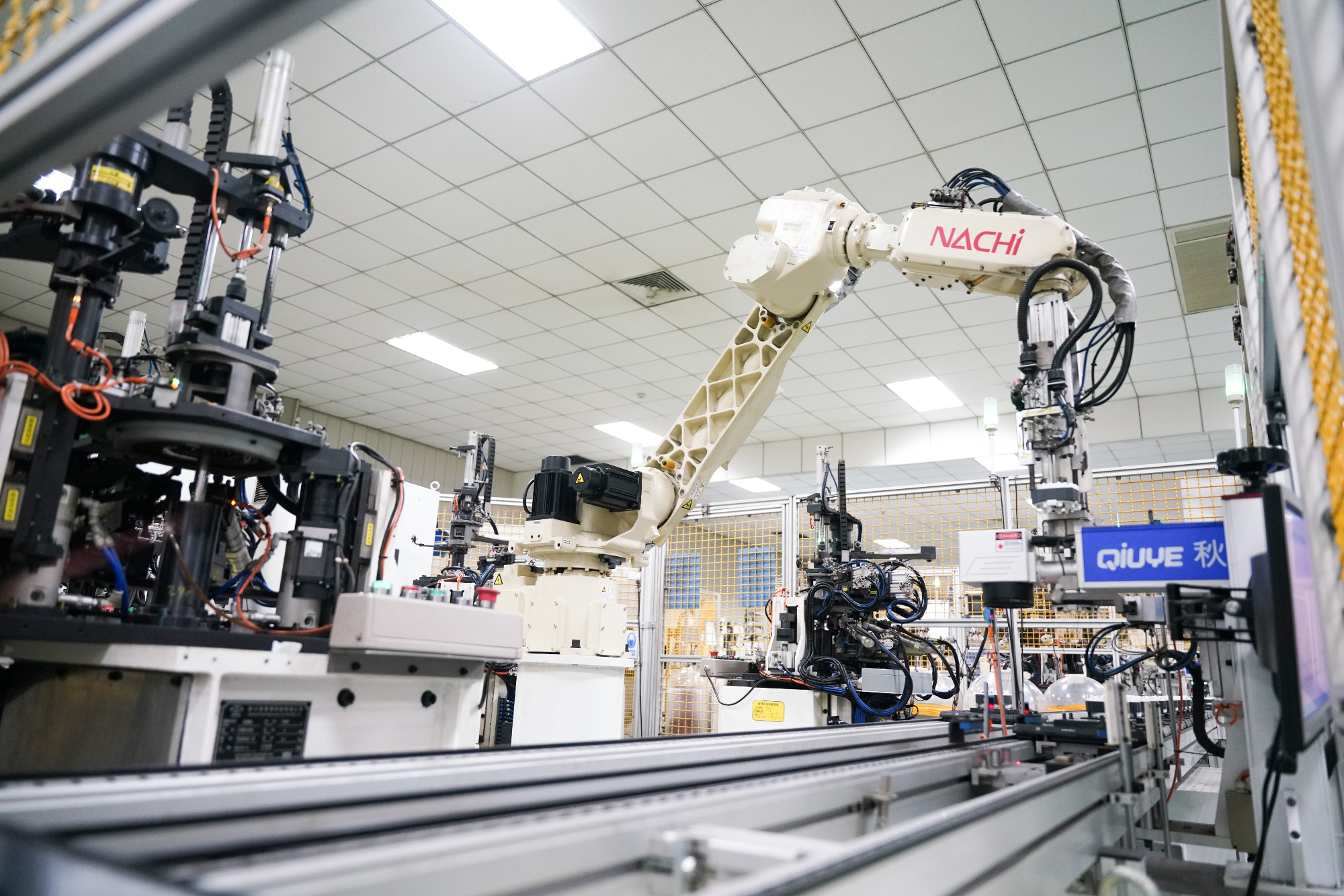 正在装配压缩机的自动机械臂(央广网记者 尚天宇 摄)
