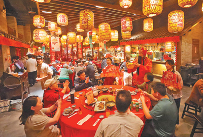 江苏南京市的一家餐馆里座无虚席,生意兴隆。徐琦 摄(人民视觉)