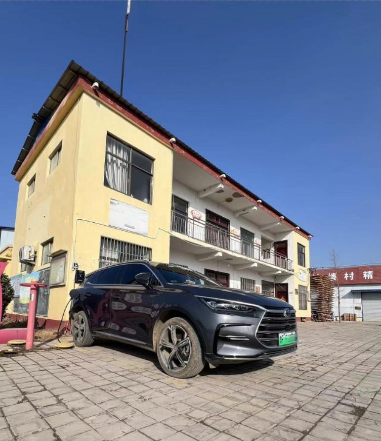 正在农村慢充桩充电的比亚迪汽车