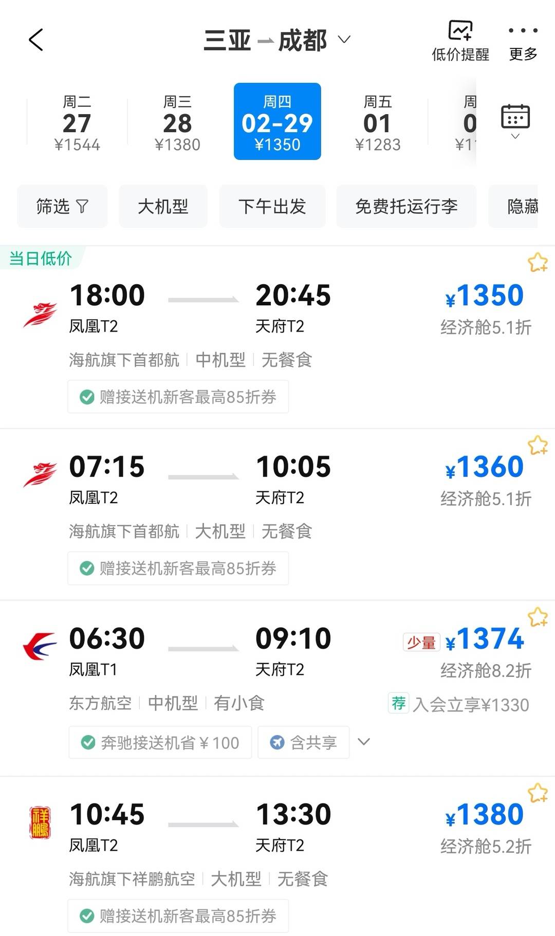 而前往海南的机票已经开始回落。据携程平台数据,春节后(起飞时间2月20日至26日)与春节期间相比,机票均价降幅约20%。一些热门航线降幅更大:北京、上海飞往三亚、海口的机票降幅达到60%以上。