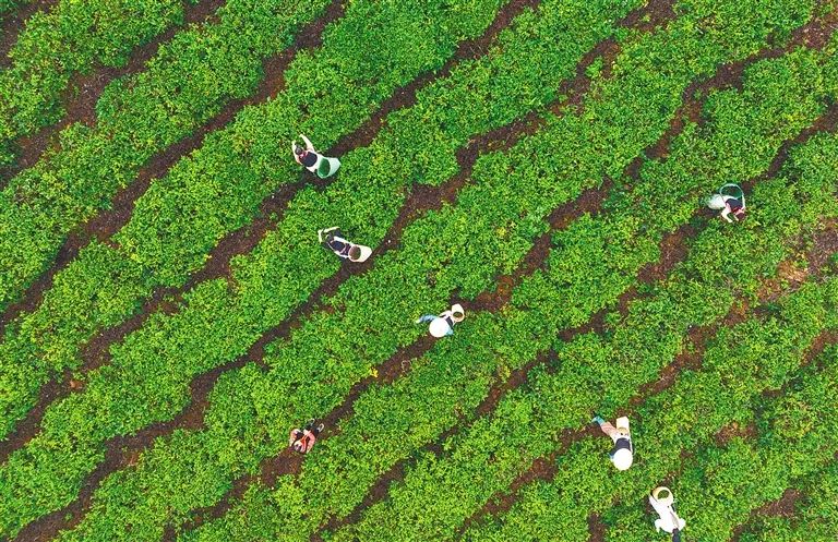 近日,在白沙黎族自治县原生态茶园小镇,茶农们在茶园里采摘早春茶。李天平摄